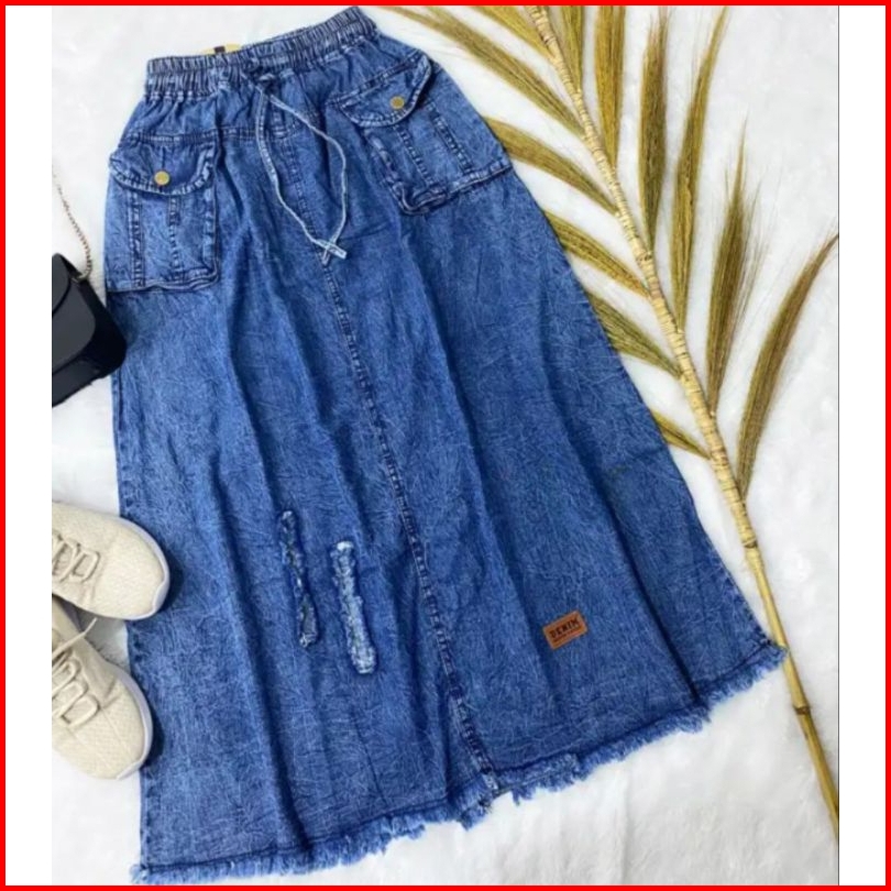 Rok Kimpul Jeans Wanita Dewasa Kantong Depan Best Seller Rok Jeans Rawis Rok Jeans Snow
