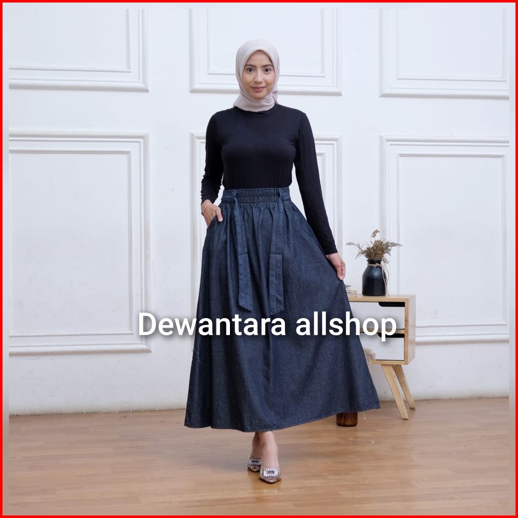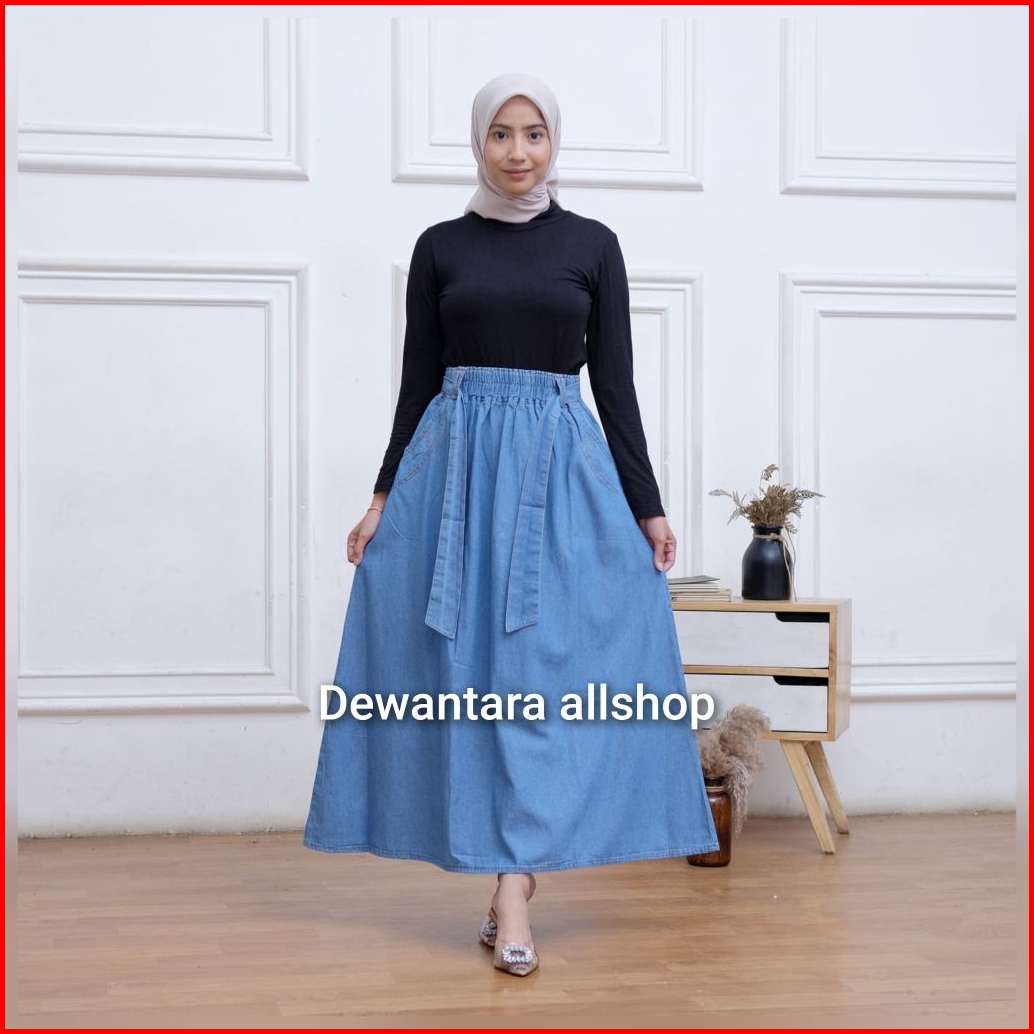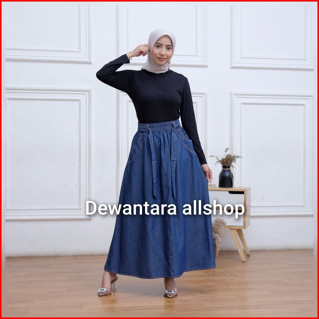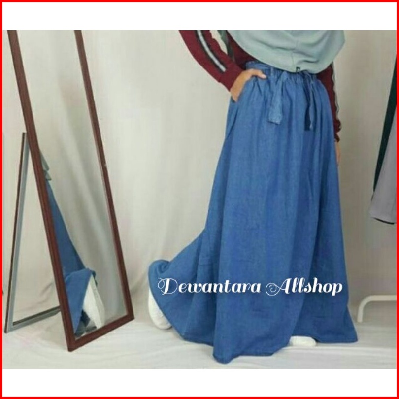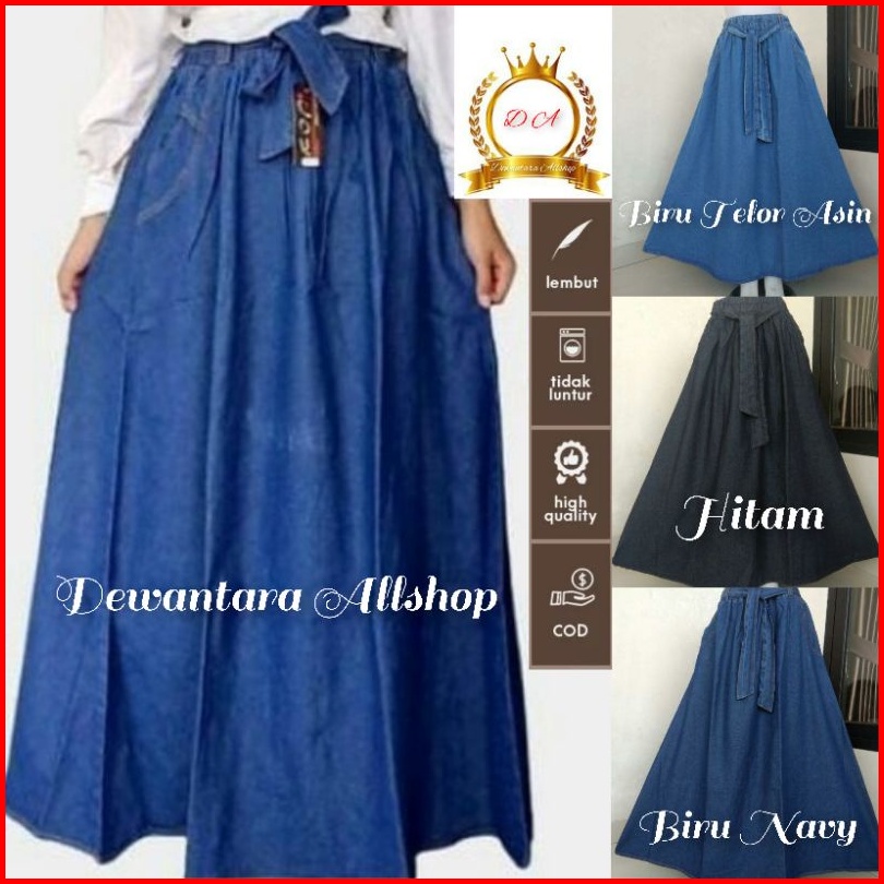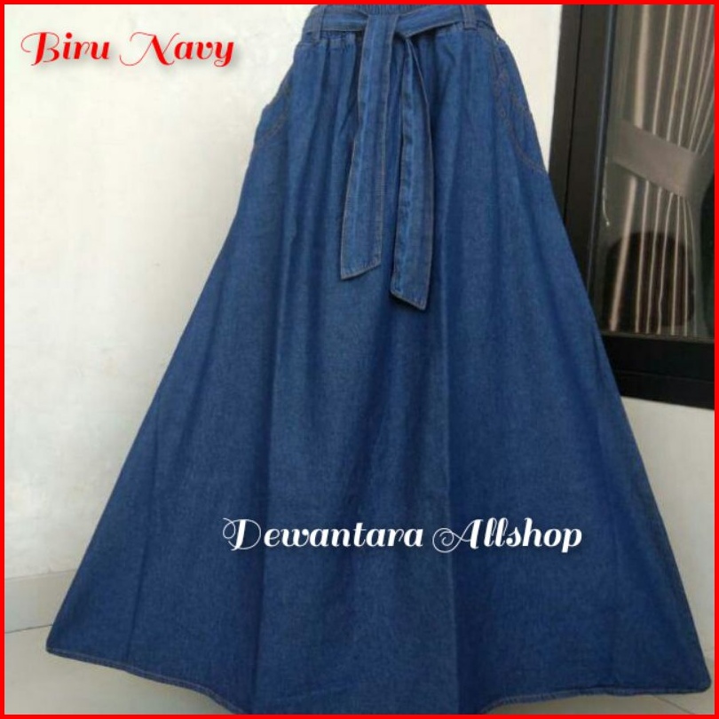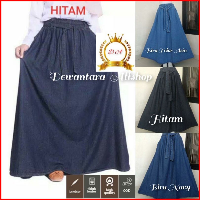 Rok Jeans Panjang Wanita Model Payung Fita Kekinian Bahan Shof Jeans Bb 40-100 Kg