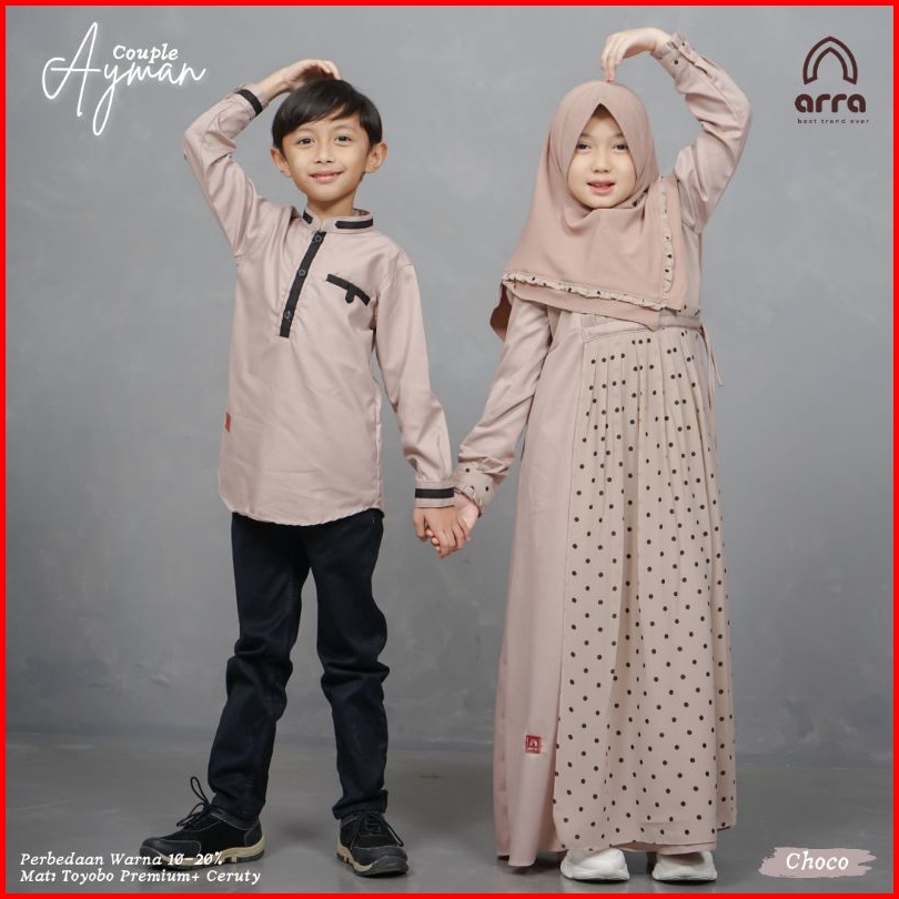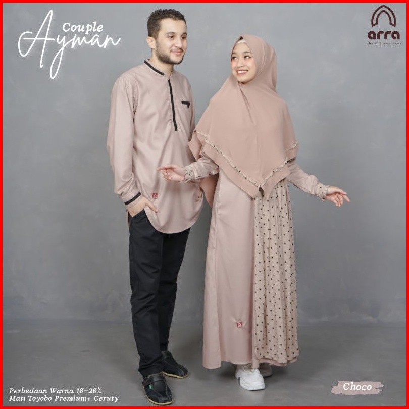 Gamis Sarimbit Keluarga Ayah Ibu Anak Series Ayman Warna Choco Original Premium Pasangan Couple Busana Muslim Kapel Kond