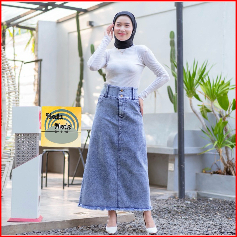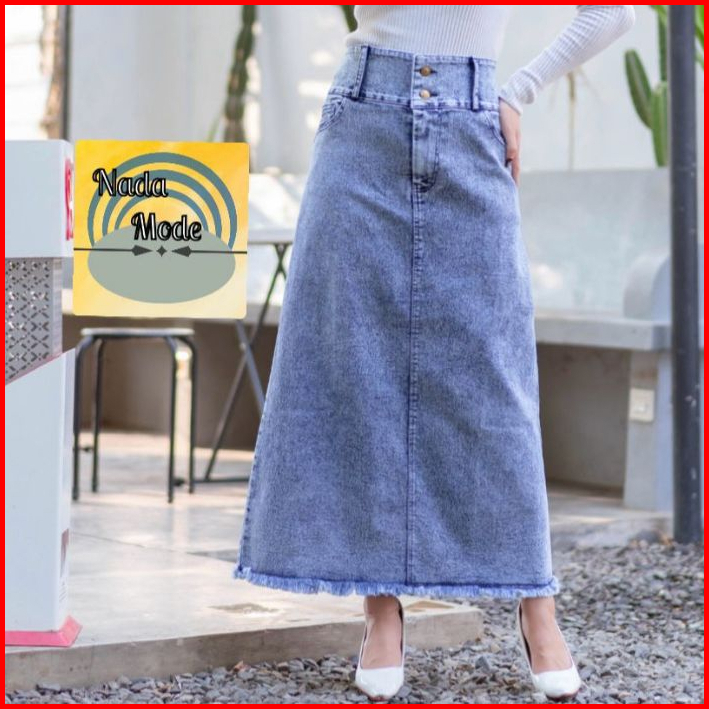 Rok Jeans Strecth A Jumbo Rok Jeans Panjang Span Wanita Rok Denim Wanita Kualitas Premium Original Nada Mode