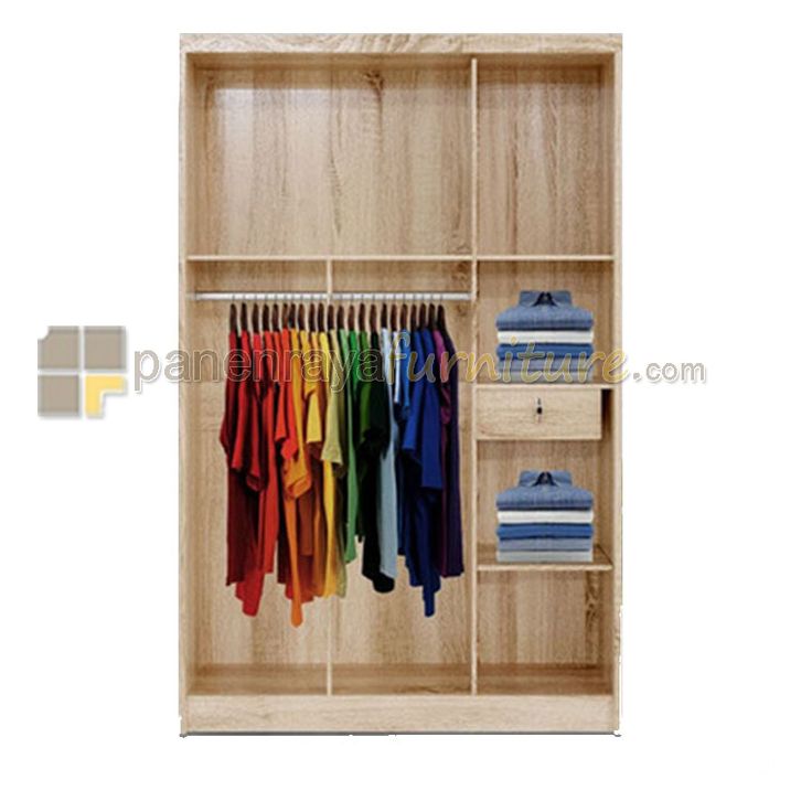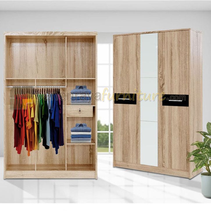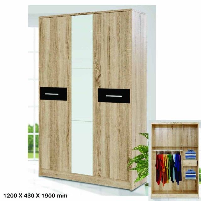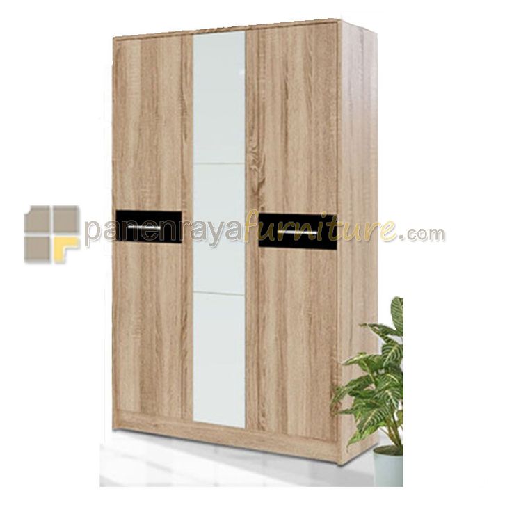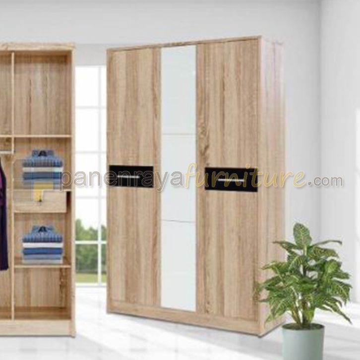 Lemari Pakaian 3 Pintu Kaca FESTIVA ANGELO Sonoma Oak 120x43x190