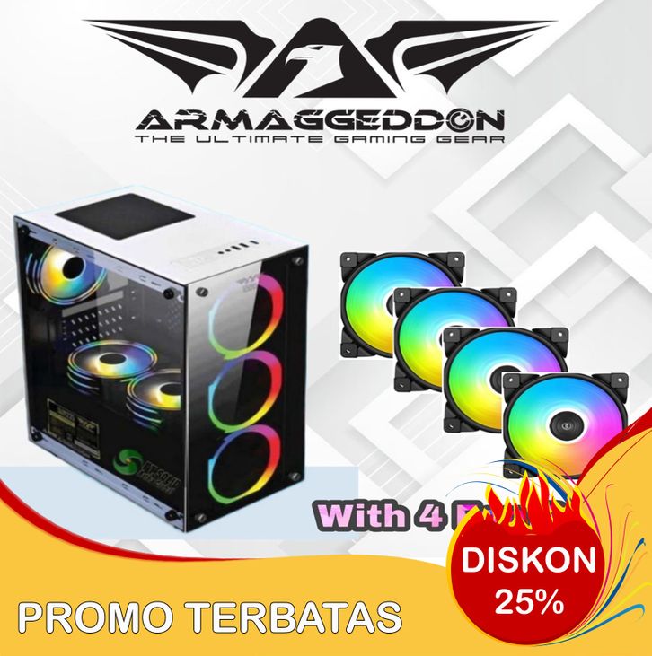 Casing PC Gaming Armaggeddon NIMITZ TR1100 White / Black FREE Fan Mini ITX Micro ATX Side Front Tampered Glass Casing Ga