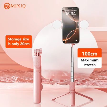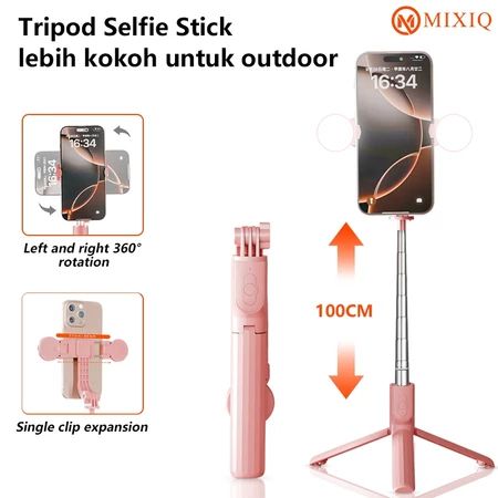MIXIQ 100CM SELFIE STICK BLUETOOTH BLUETOOTH SELFIE DENGAN SATU TRIPOD LAMPU LED PORTABEL TRIPOD HP KONTEN KEKINIAN
