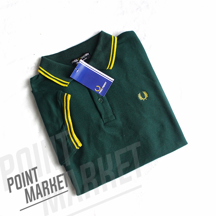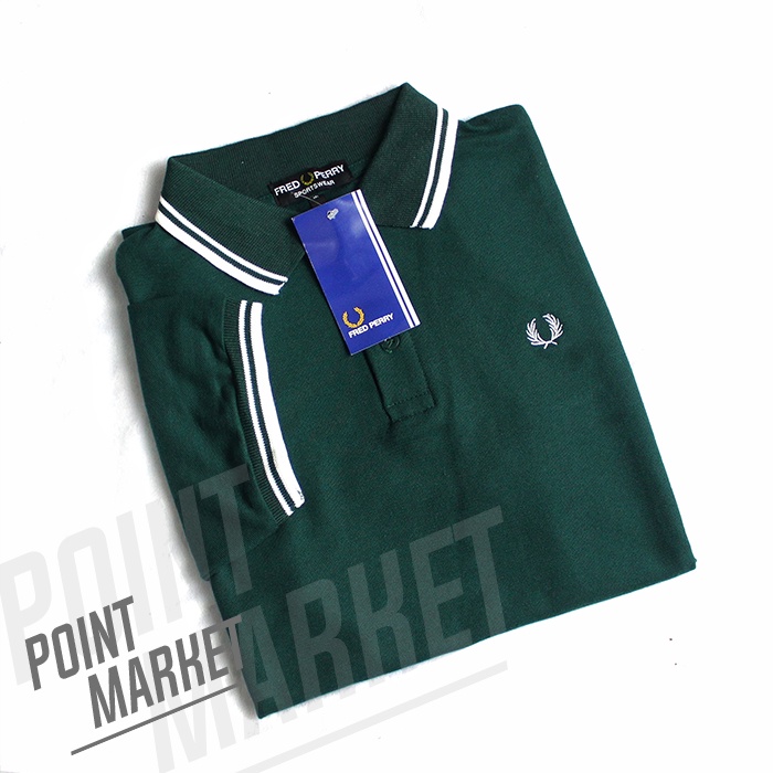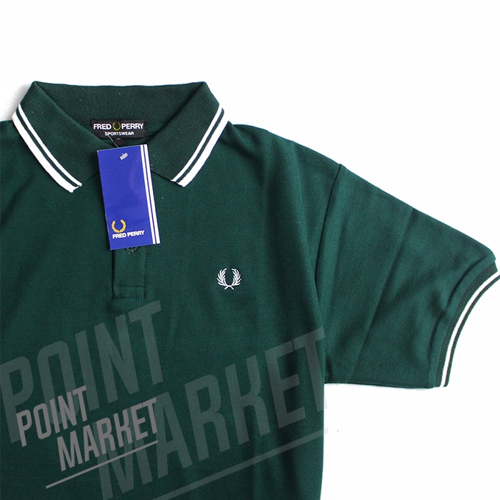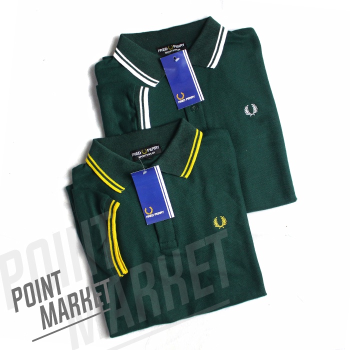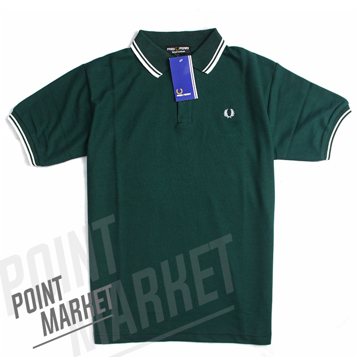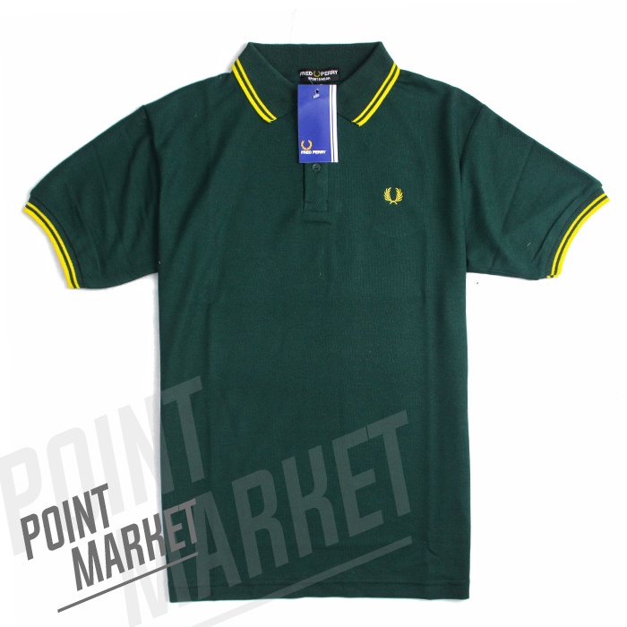 KAOS POLO SHIRT FRED PERY POINT MARKET PRIA KERAH ATASAN LENGAN PENDEK HIJAU BAHAN COTTON PREMIUM