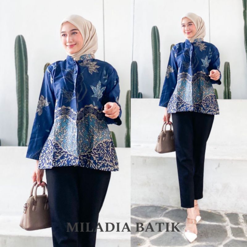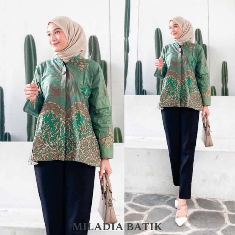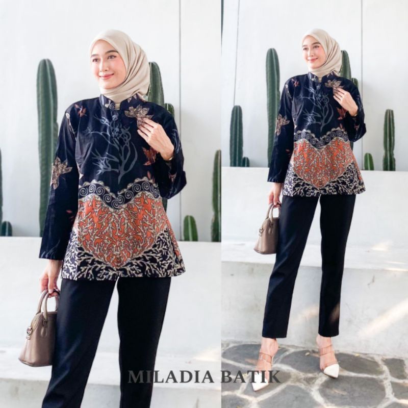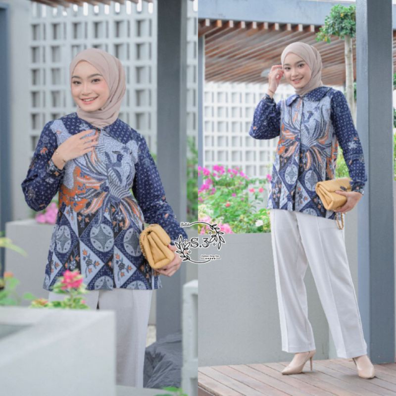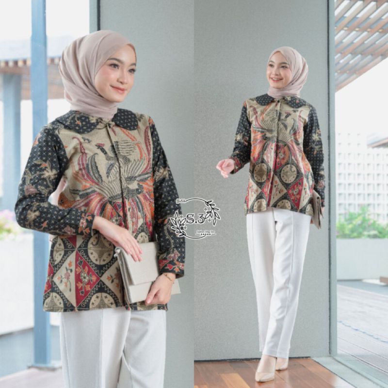 ZALEA BLOUSE -ATASAN BATIK WANITA LENGAN PANJANG TERBARU BLOUSE BATIK KOMBINASI BAJU BATIK WANITA MODERN