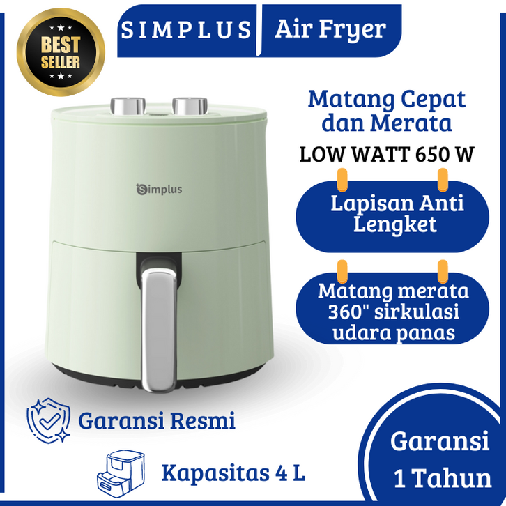 AIR FRYER SIMPLUS 4L 650W PENGGORENGAN SEHAT TANPA MINYAK LOW WATT ANTI LENGKET TOMBOL MEKANIS MASAK CEPAT GARANSI 1 THN