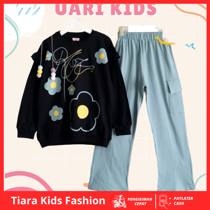 Setelan Anak Tanggung Perempuan Meldi 3-13tahun Setelan Celana Panjang Cargo Anak Tanggung Baju Anak Perempuan 1 Set