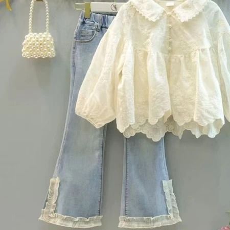 GIRLS SUIT SUMMER DOPAMINE LITTLE GIRL OUTFIT COMPLETE SET OF SHIRTS, SMALL SUSPENDERS, DENIM SKIRT TWO-PIECE SET JEANS