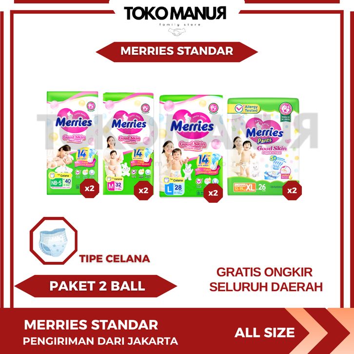[Mall] Popok Bayi Meries Standar Paket 2 Bal Nbs40 M32 L28 Xl26 Murah Gratis Ongkir