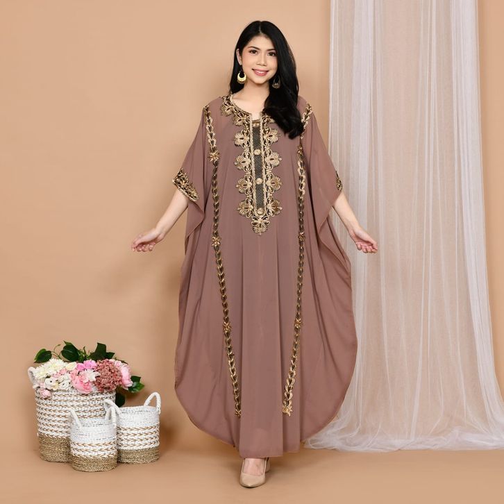 Baju Kaftan Wanita Terbaru+bros Premium Kaftan Lebaran Full Bordir Pesta Kondangan,pengajian Mewah Elegan
