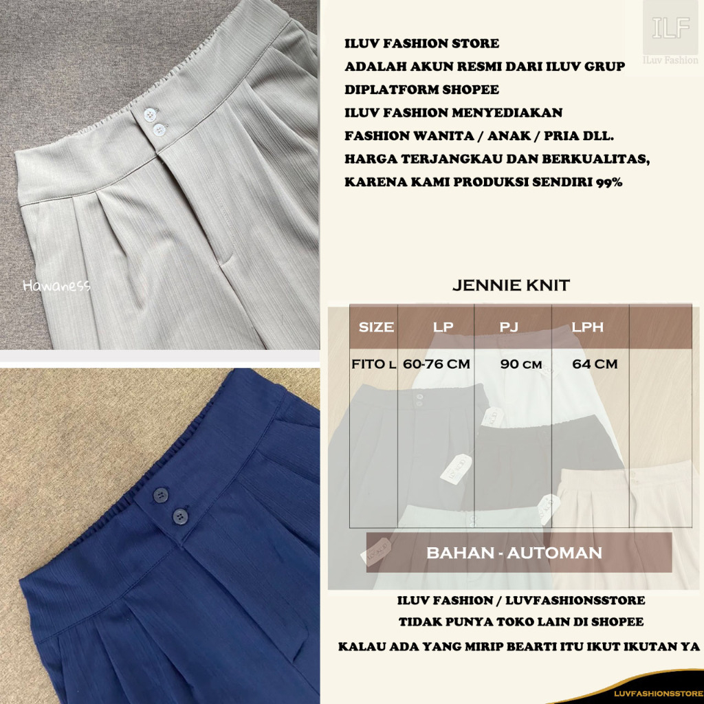 IL - JENNIE KNIT PANTS CELANA KULOT HIGWAIST KNIT KANCING HORNET