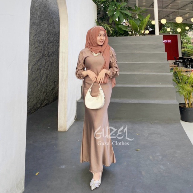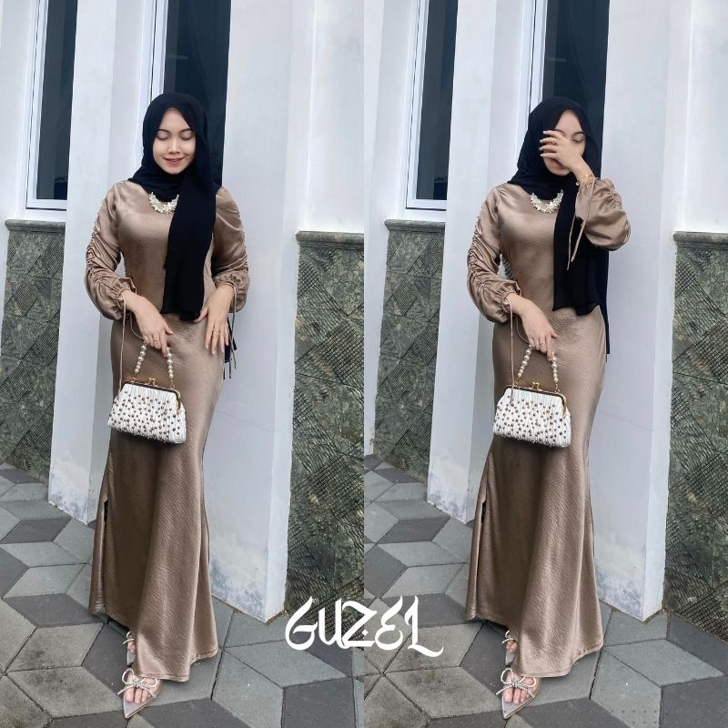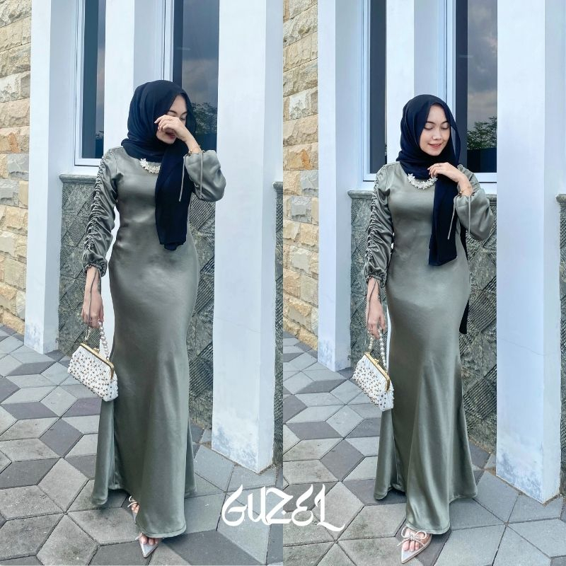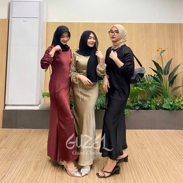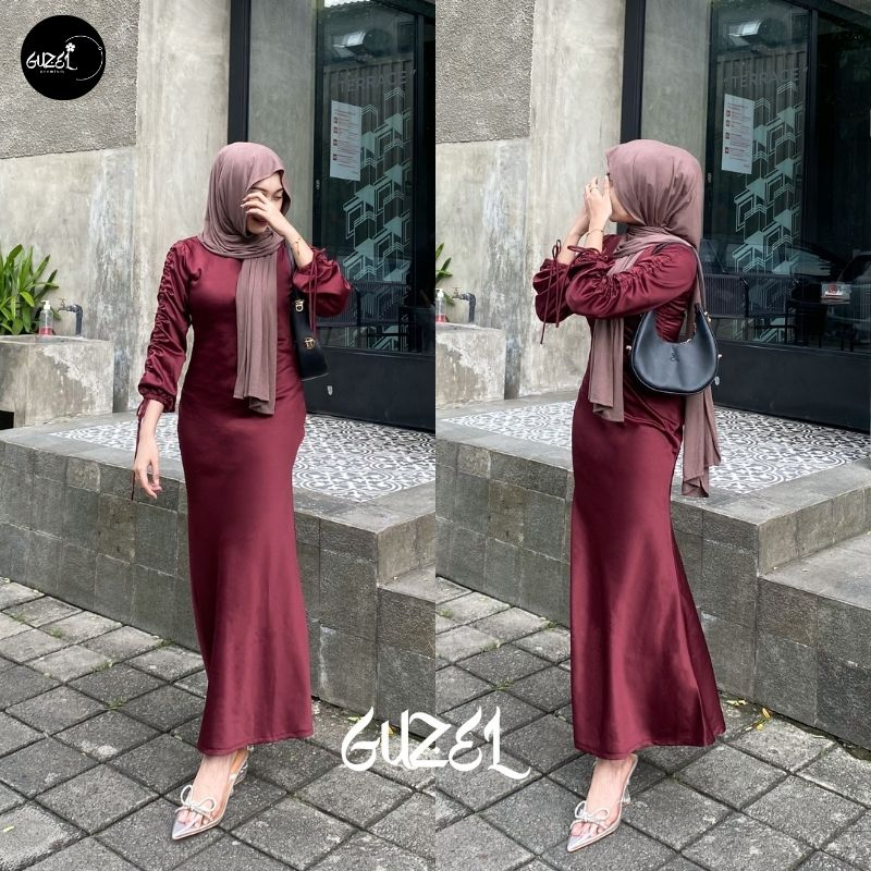 ELLA DRESS BY GUZEL SATIN SILK PREMIUM BAJU FASHION WANITA KONDANGAN WISUDA COUPLE GAMIS LEBARAN SLIM BODY FIT KEKINIAN