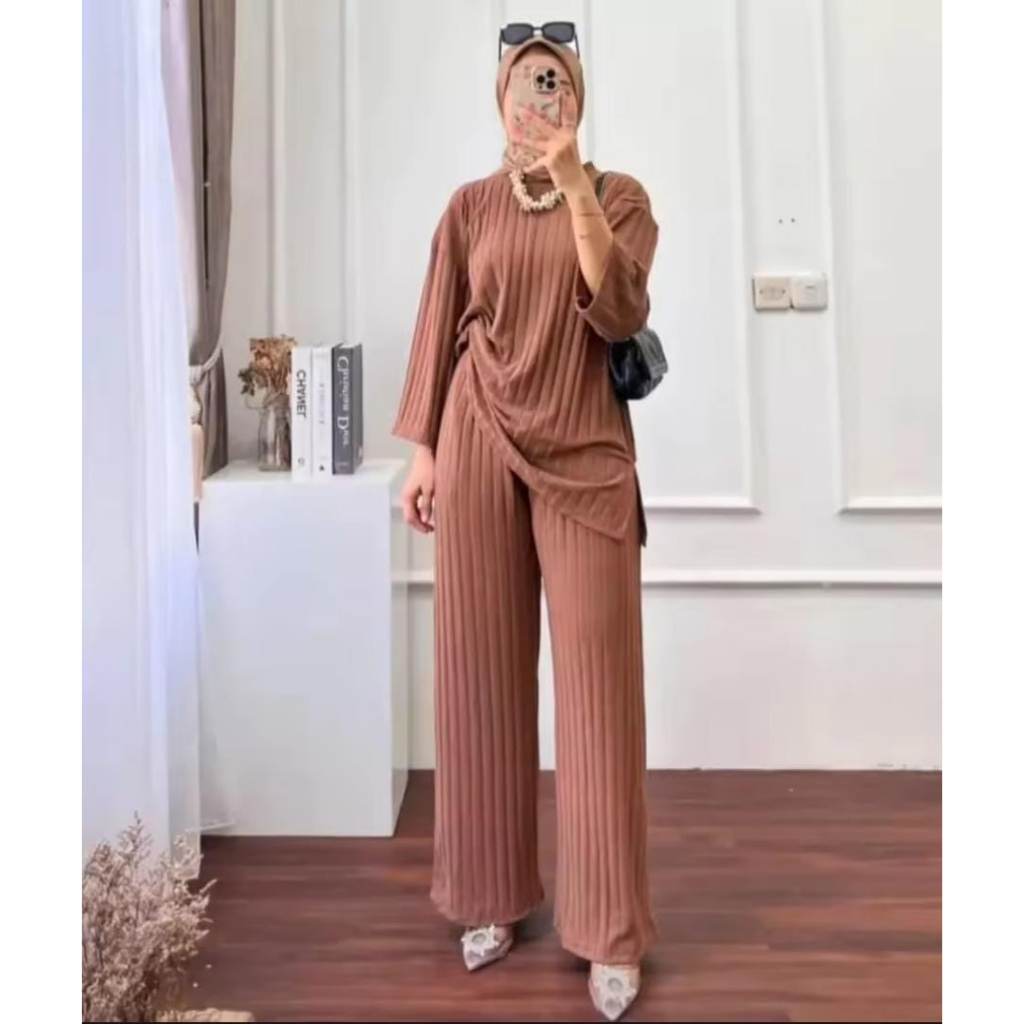 ONE SET KNIT PREMIUM SETELAN KNIT WANITA TERBARU KEKINIAN JUMBO KOREAN STYLE