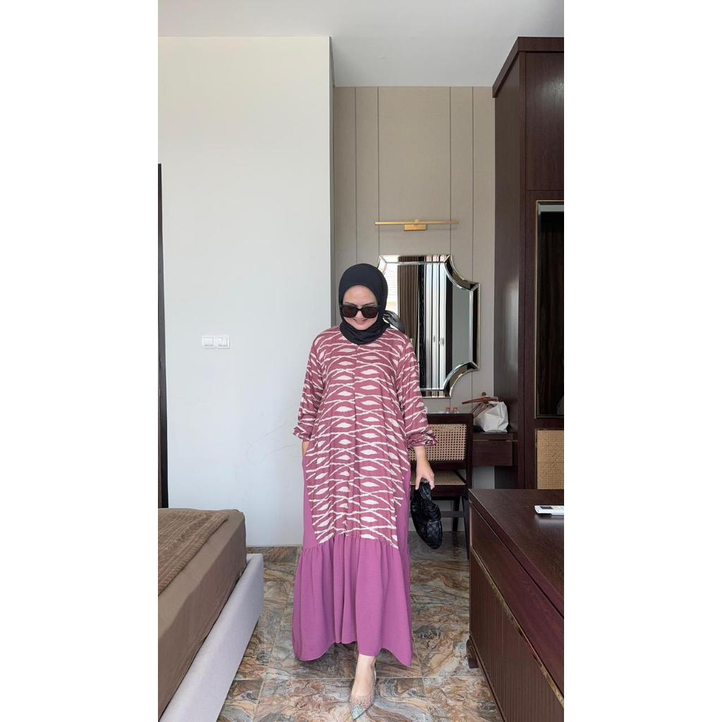 GAMIS ALULA ALULA DRESS GAMIS KOMBINASI MOTIF POLOS