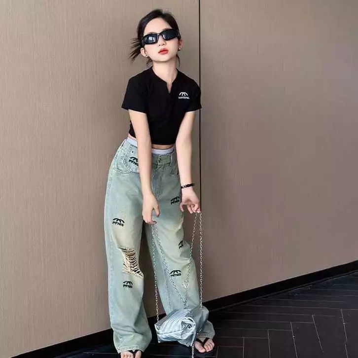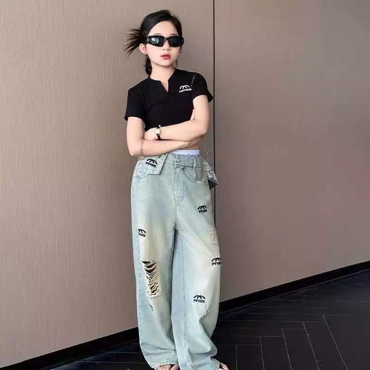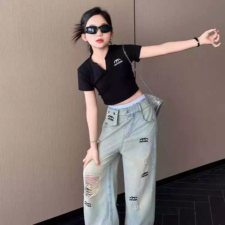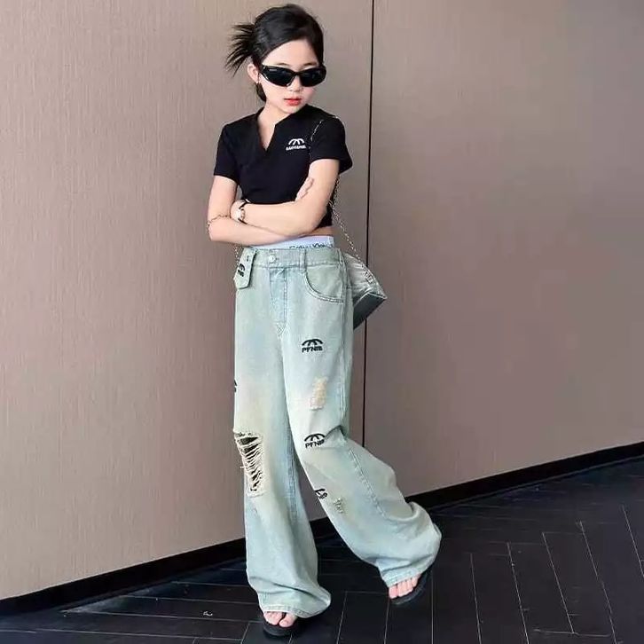 SETELAN CELANA PANJANG ANAK FASHION TERBARU SETELAN BAJU CROP TOP ANAK CELANA JEANS PANJANG KEKINI