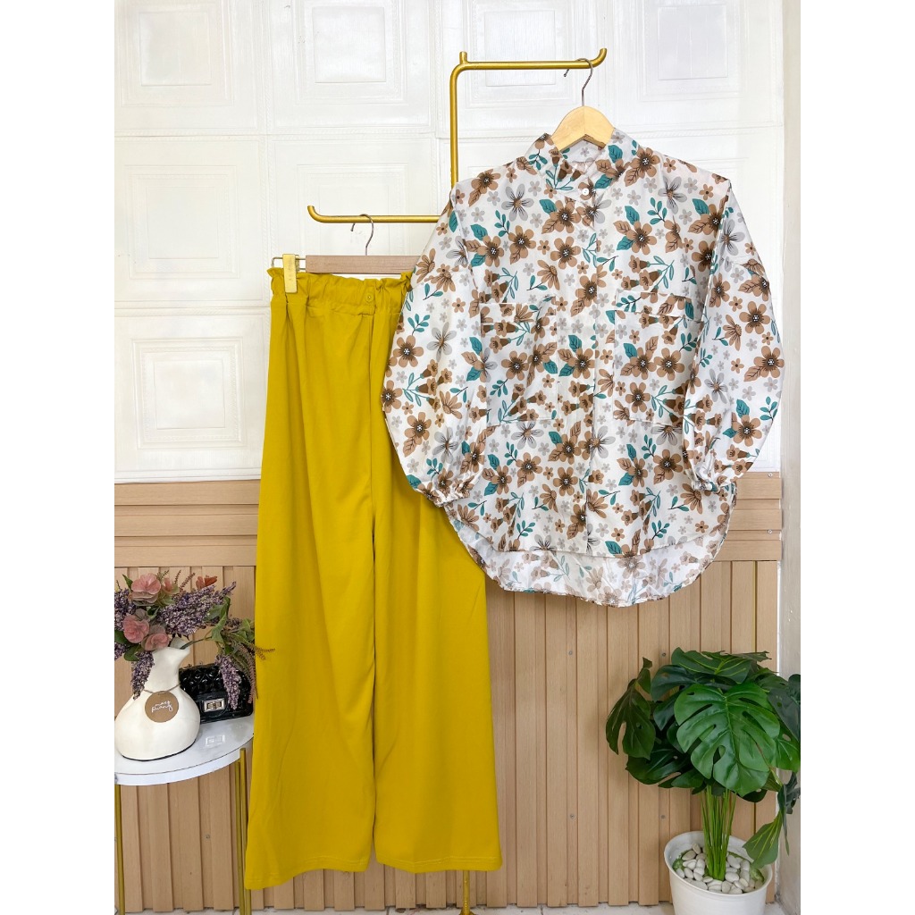 ONESET FLOWER SET WANITA MOTIF BUNGA ATASAN+CELANA
