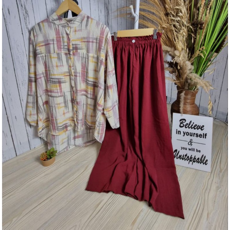 ONE SET AUDREY CRINCLE MOTIF PREMIUM IMPORT STELAN WANITA