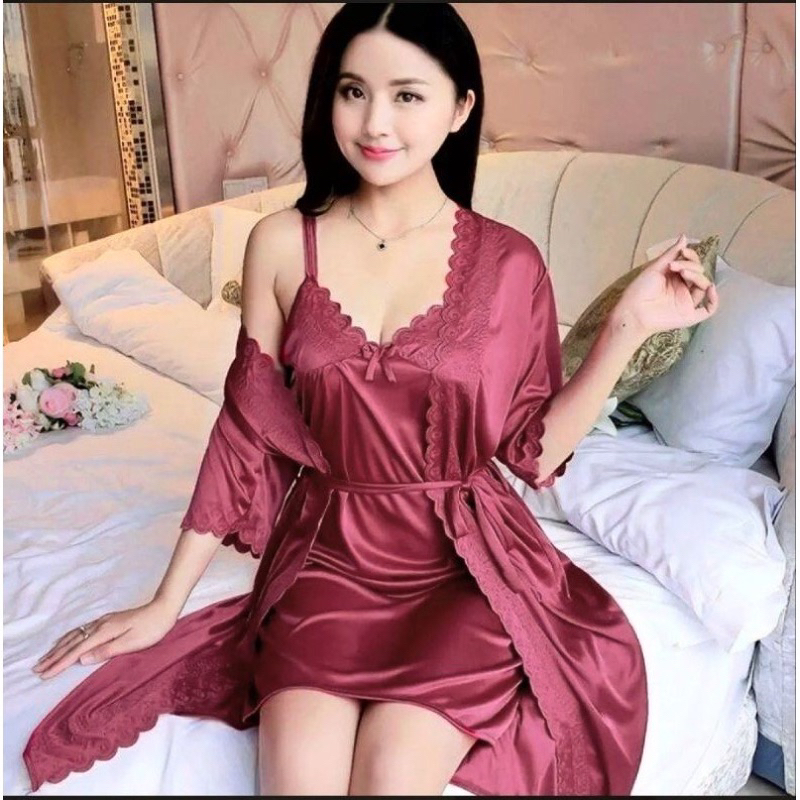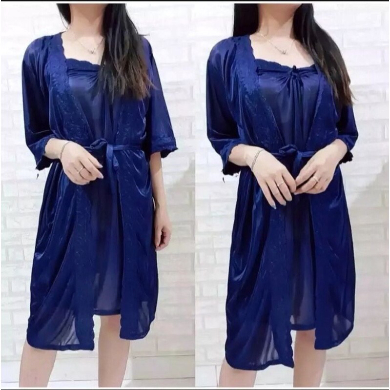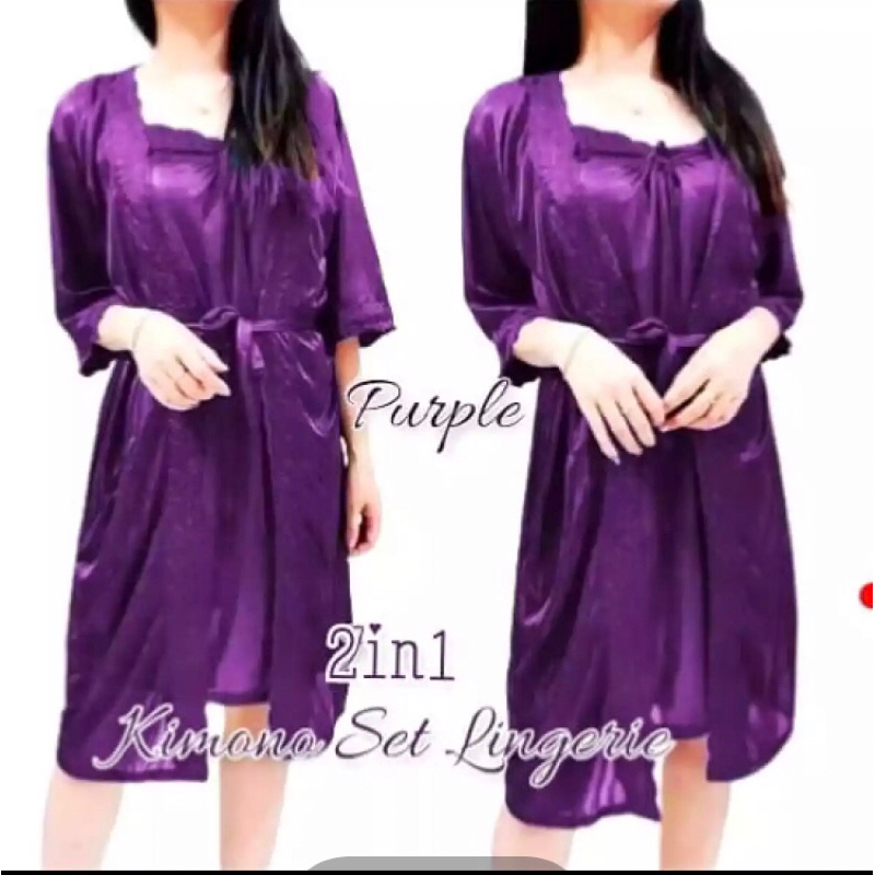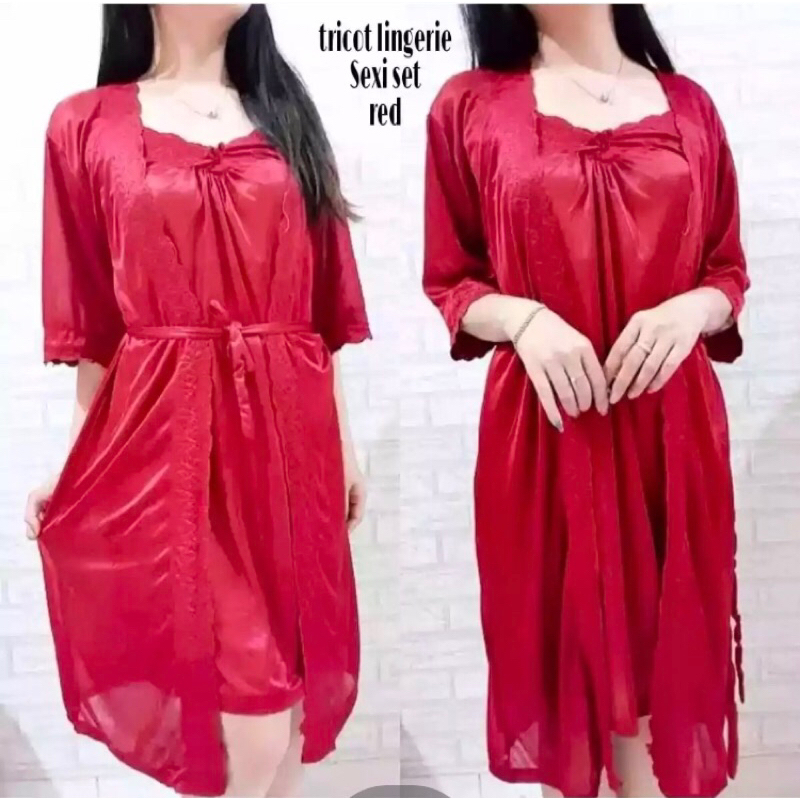 BAJU TIDUR WANITA KIMONO TRICOT 2IN1 LINGERIE SEXY SIZE L DAN XXL