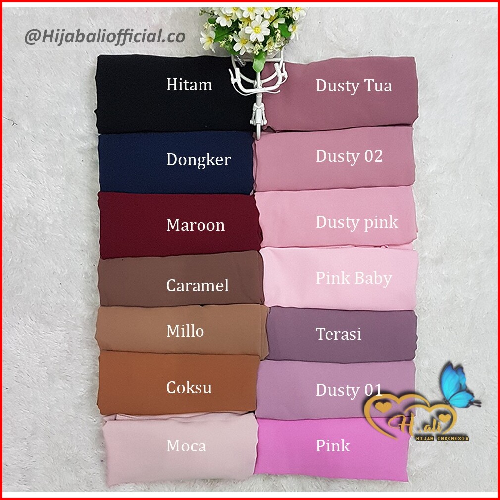 MILLO, DUSTY, HIJAU BOTOL, HIJAU WARDAH, ABU SILVER, KUNYIT, TERASI, Hitam, Biru Muda, MOCCA, COKSU, MAROON, HIJAU PUPUS, CARAMEL, DONGKER, Violet, Abu Tua, HIJAU ARMY, GREEN TEA, Ungu, CREAM, BIRU ELEKTRIK, BROWNIS, Khaki