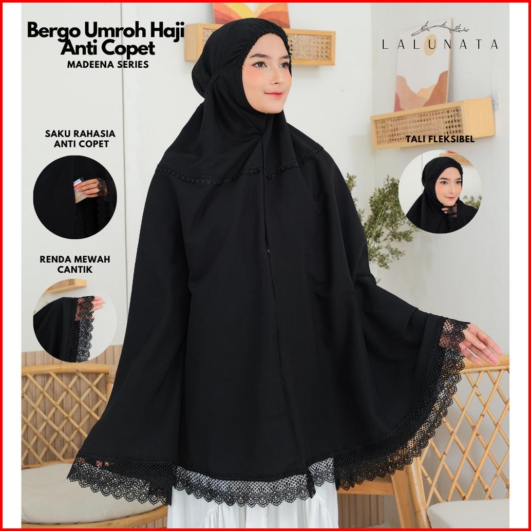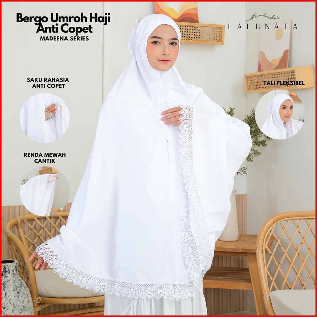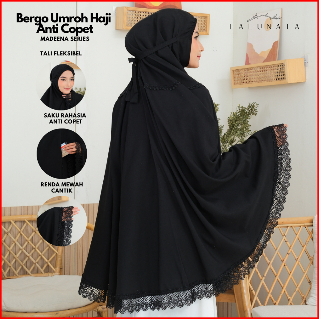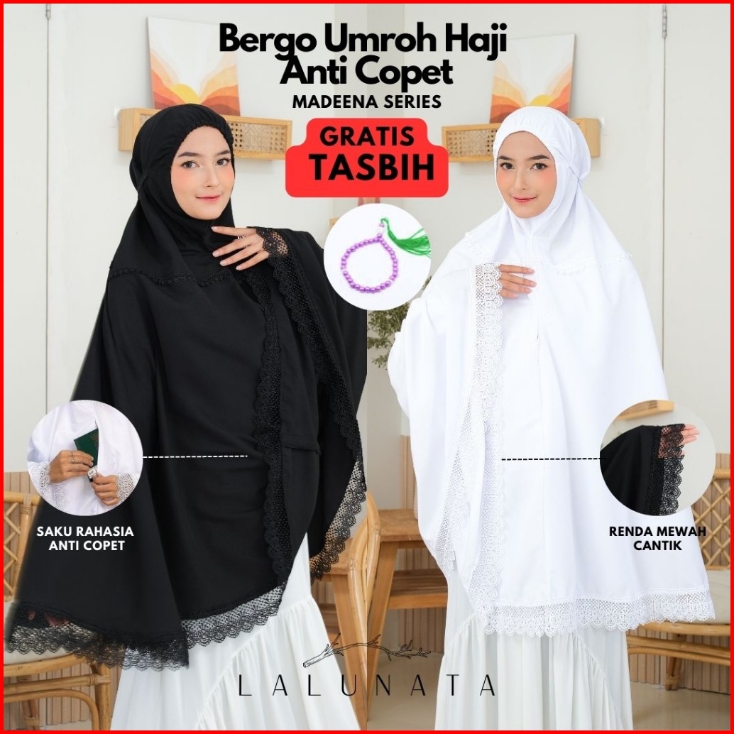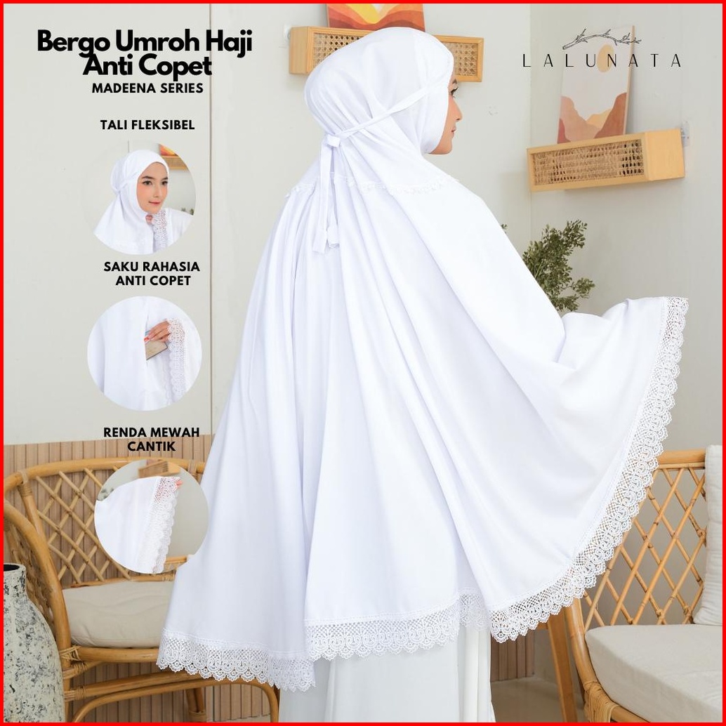 Lalunata - Bergo Umroh Haji Bersaku Anti Copet Jumbo Katun Premium Perlengkapan Haji Dan Umroh