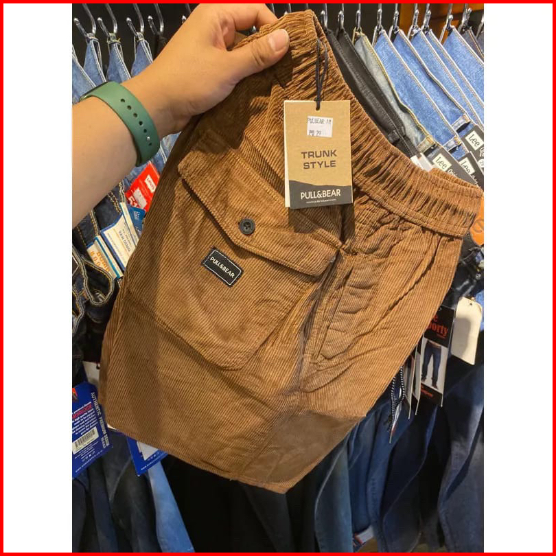 Celana Corduroy Pendek Pria Cowok Dewasa Atas Lutut Pinggang Karet Model Brotshot Boardshot Short Pants