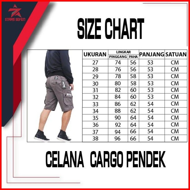 Celana Pendek Pria Cargo Size 27-38 Original Mma