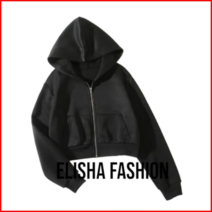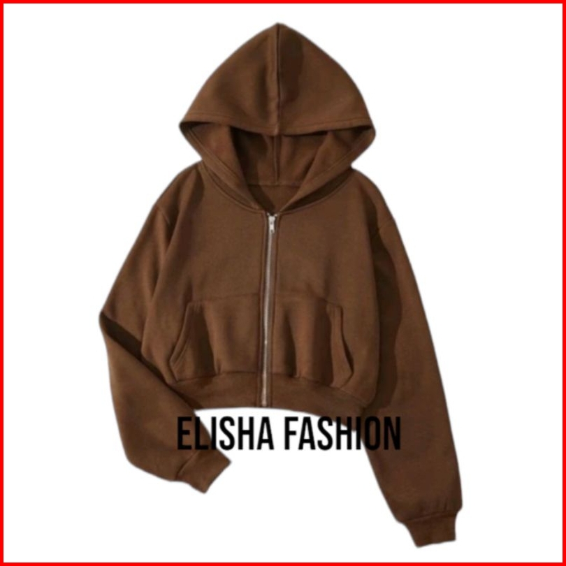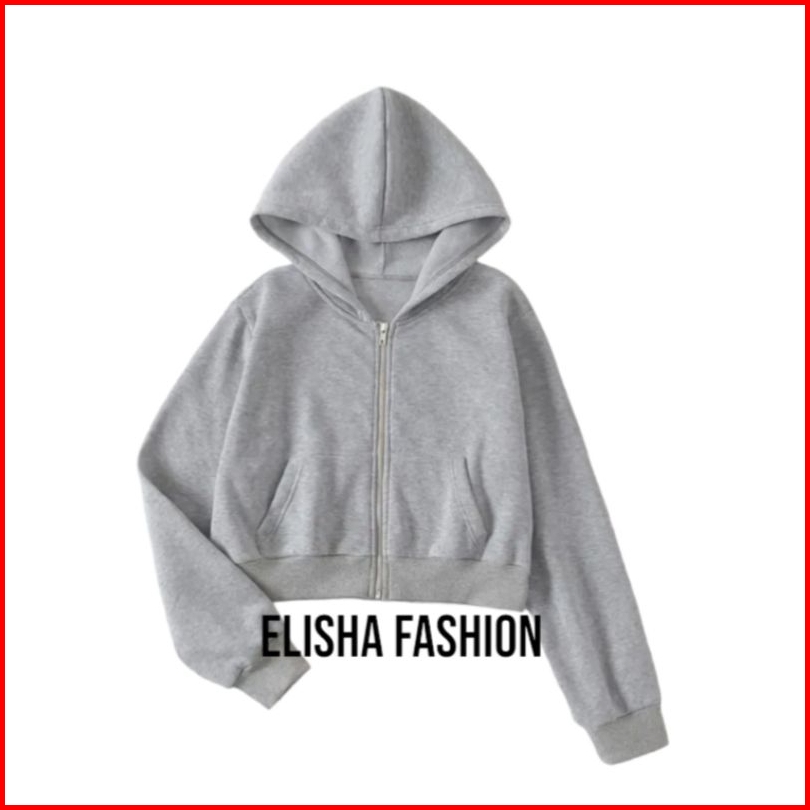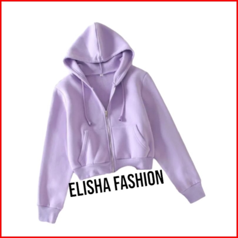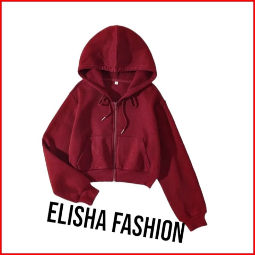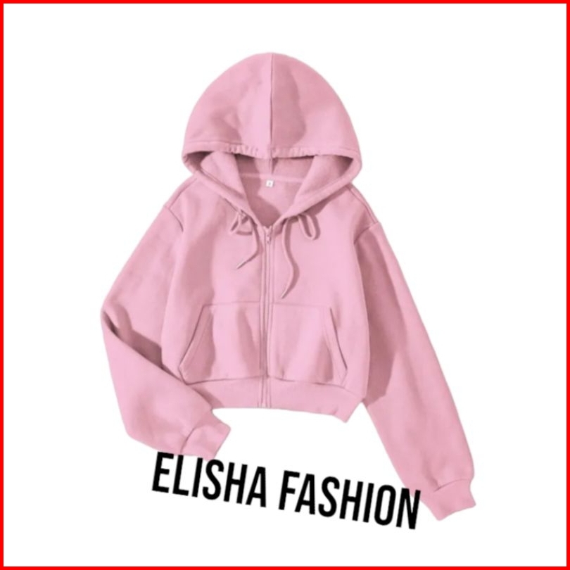 Jaket Sweater Crop Hoodie Wanita Kekinian Plecce