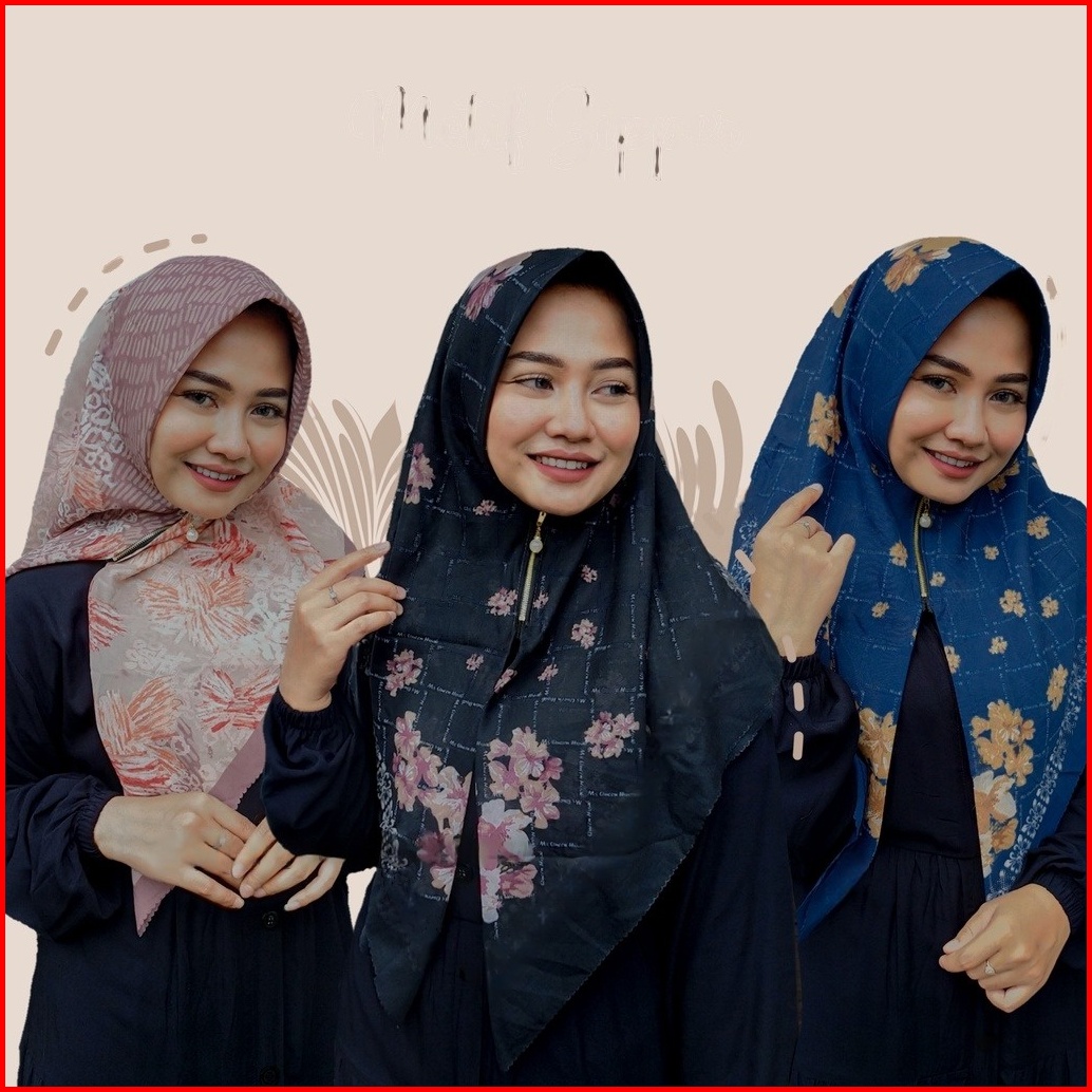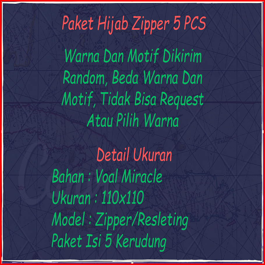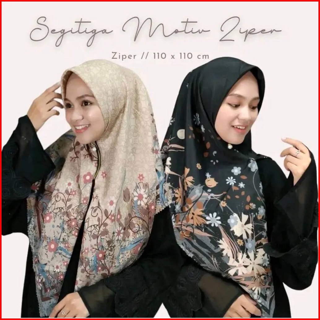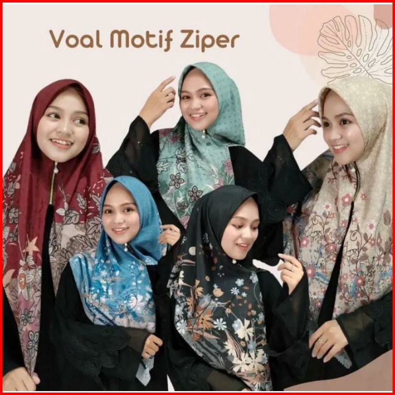 Paket 5 Pcs Random - Kerudung Zipper Motif Bahan Voal Premium - Jilbab Sleting Murah Cantik Menawan Dan Trendi