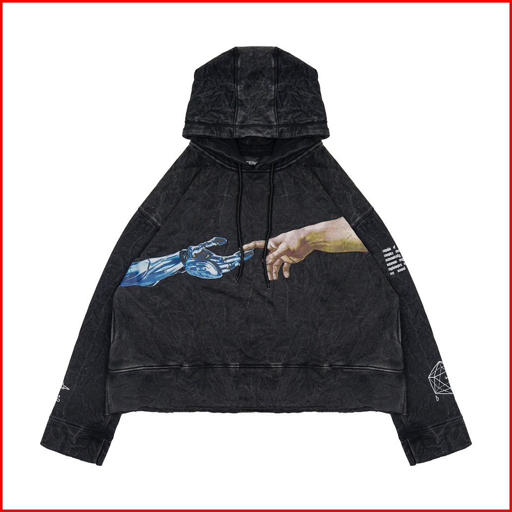 Moxie Hoodie Crop Washed Unfinish Oversize Touch