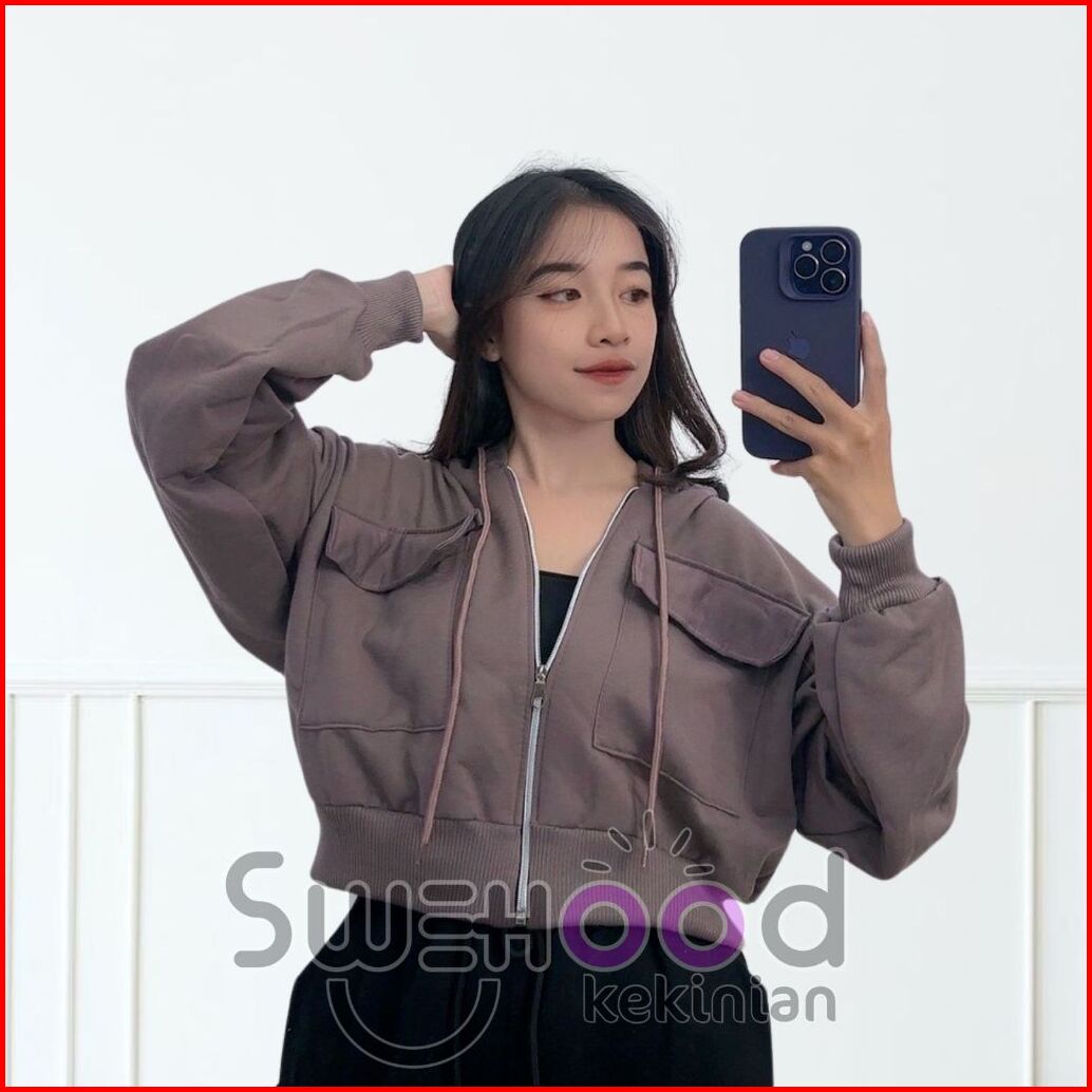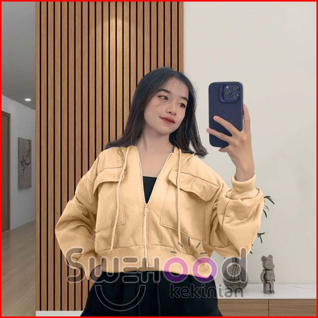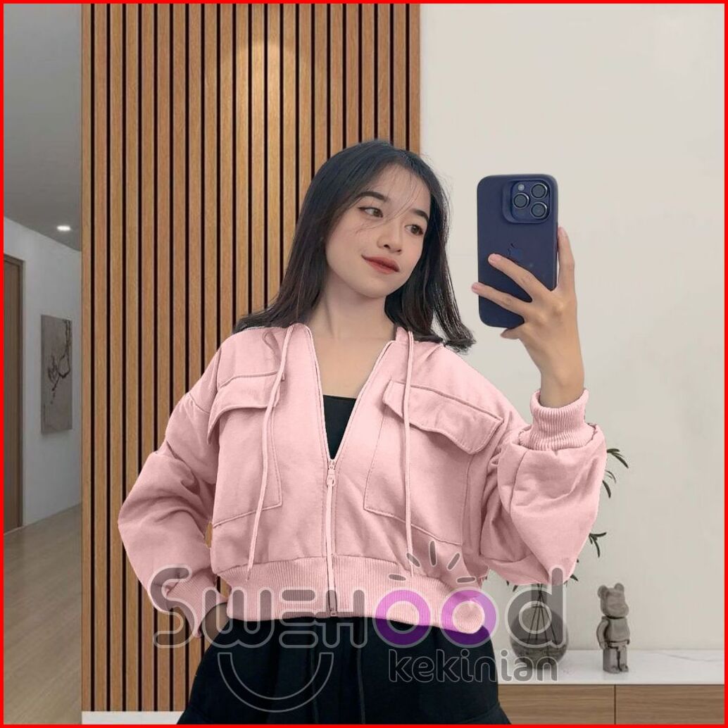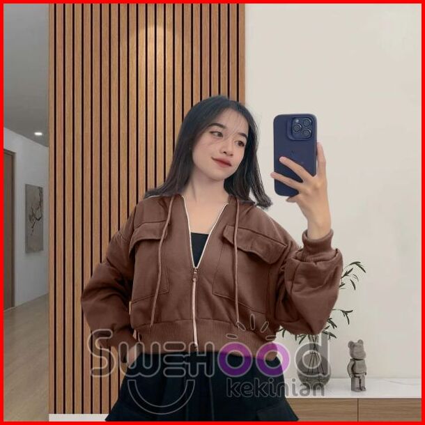 Calista Premium Jaket Sweater Crewneck Hoodie Zipper Crop Kekinian Fashion Outfit Ootd Korean Style Baju Atasan Jacket C