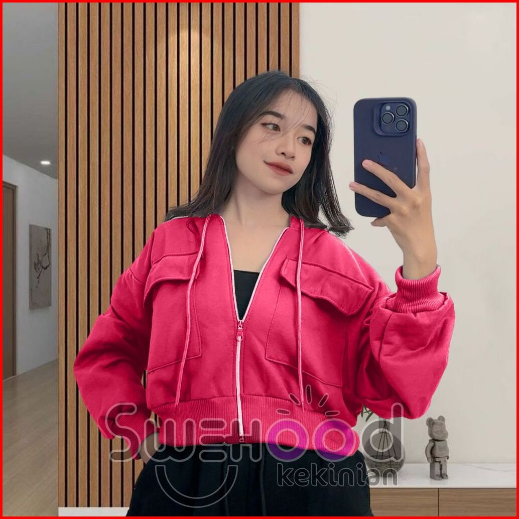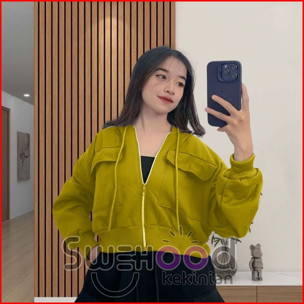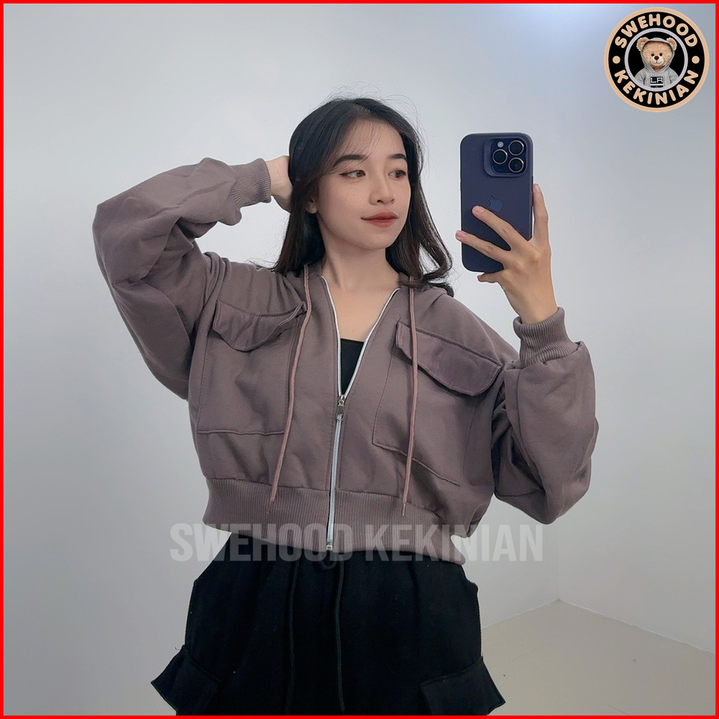 Calista Premium Jaket Sweater Crewneck Hoodie Zipper Crop Kekinian Fashion Outfit Ootd Korean Style Baju Atasan Jacket C