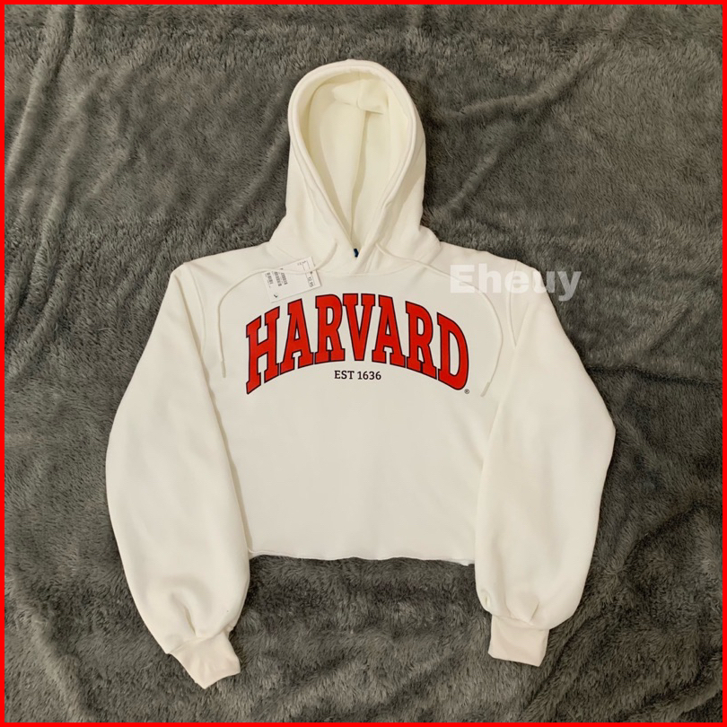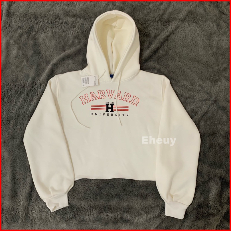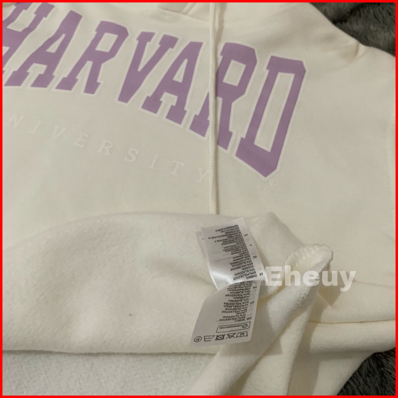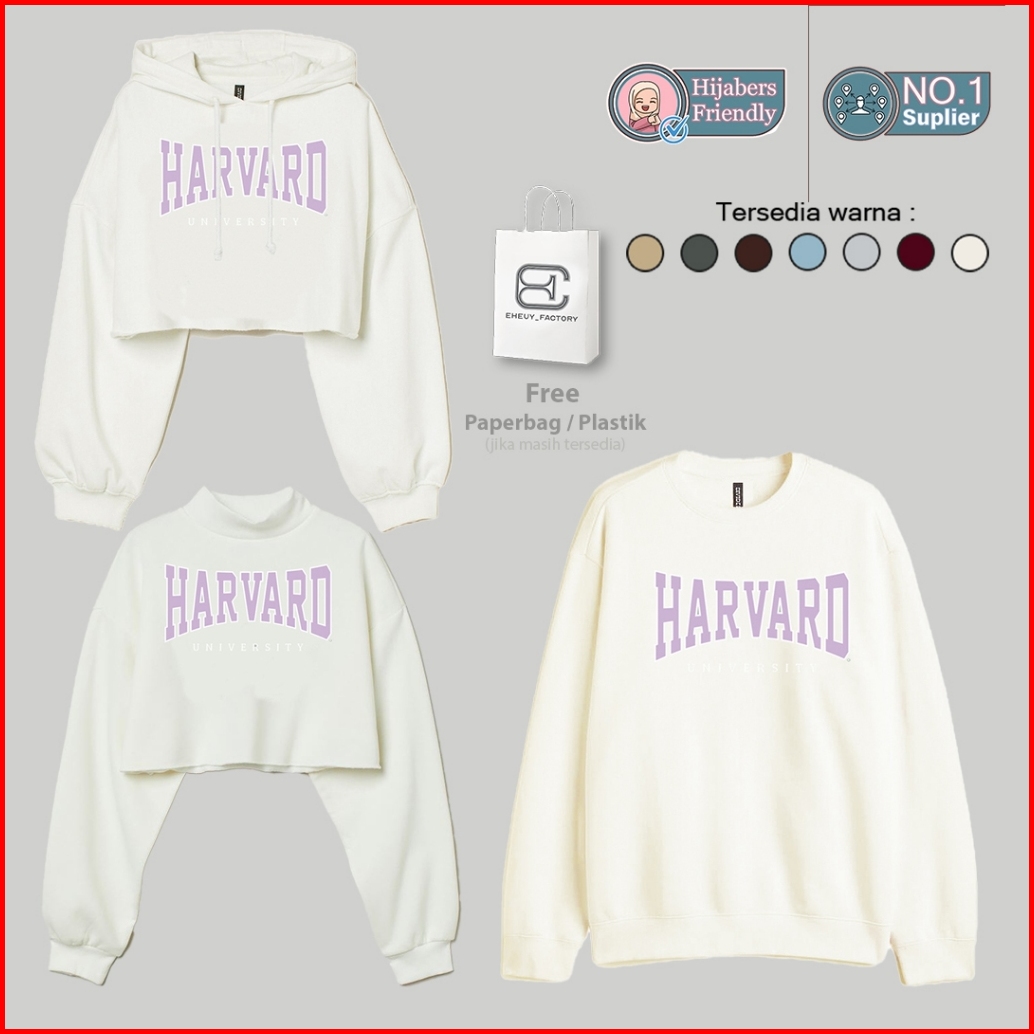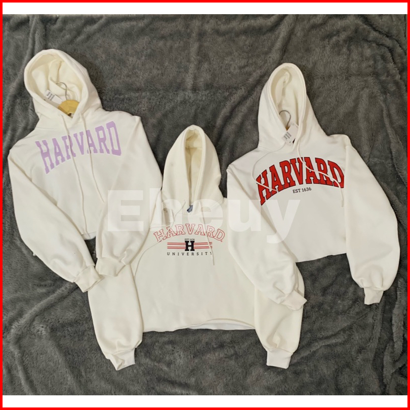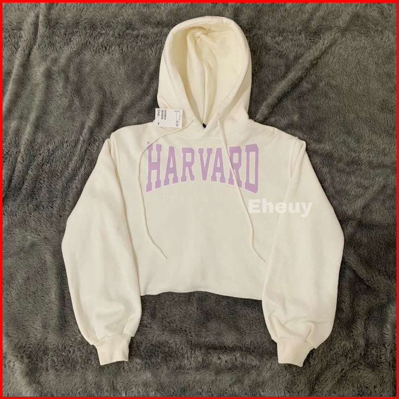 Hoodie Crop Harvard Logo Ungu Broken White Sweater Hoodie Cropped Wanita Korean Style Bahan Tebal