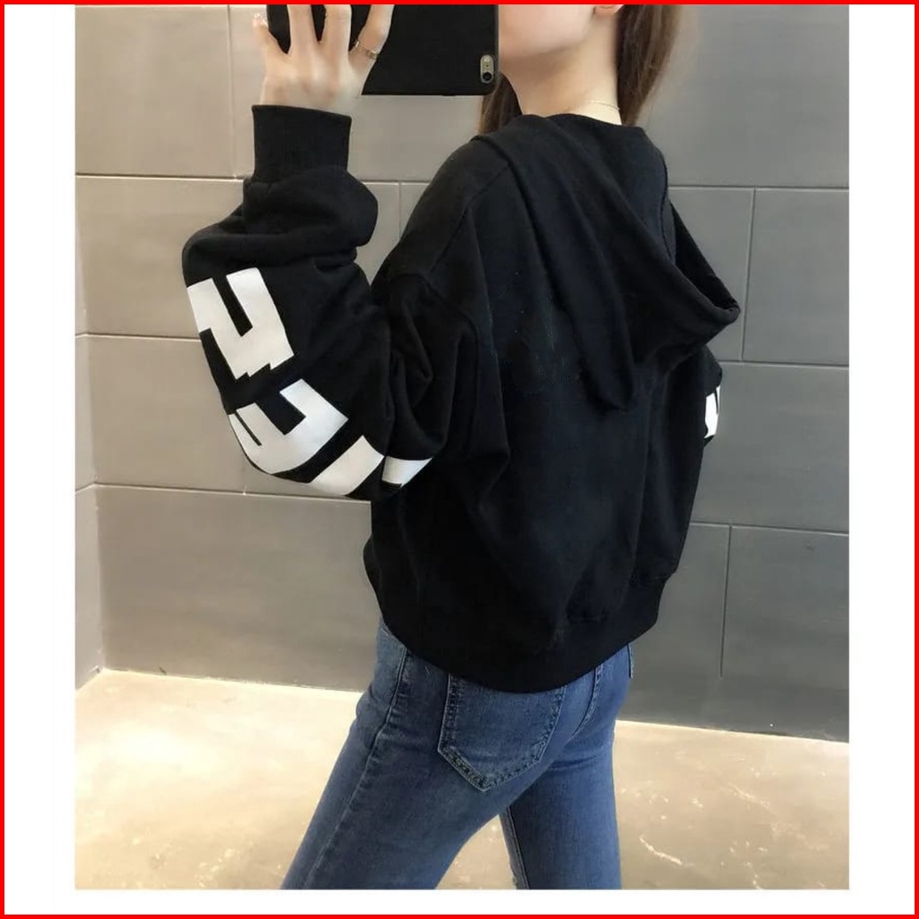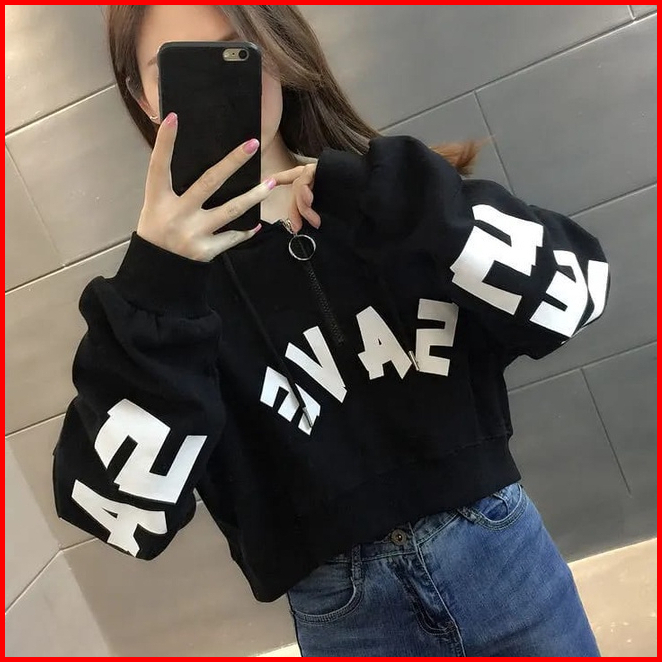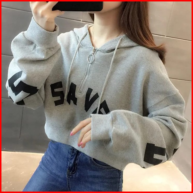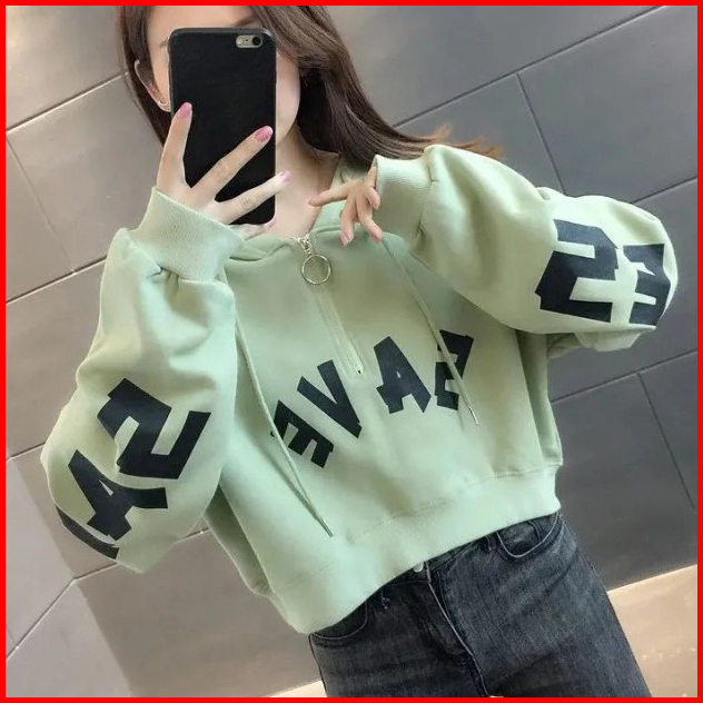 Vallina - Save Crop Half Zip Hoodie Sweater Outerwear Korean Remaja Wanita Premium