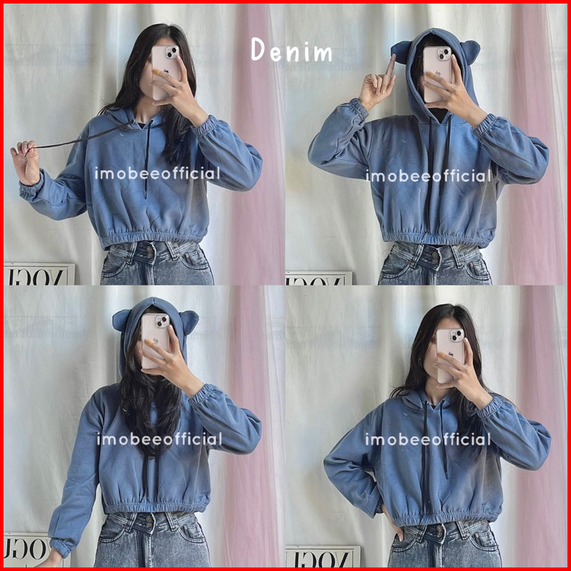 Cutie Ear Crop Hoodie Hoodie Bunnie Crop Karet