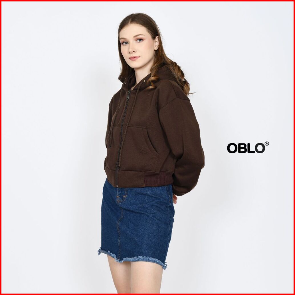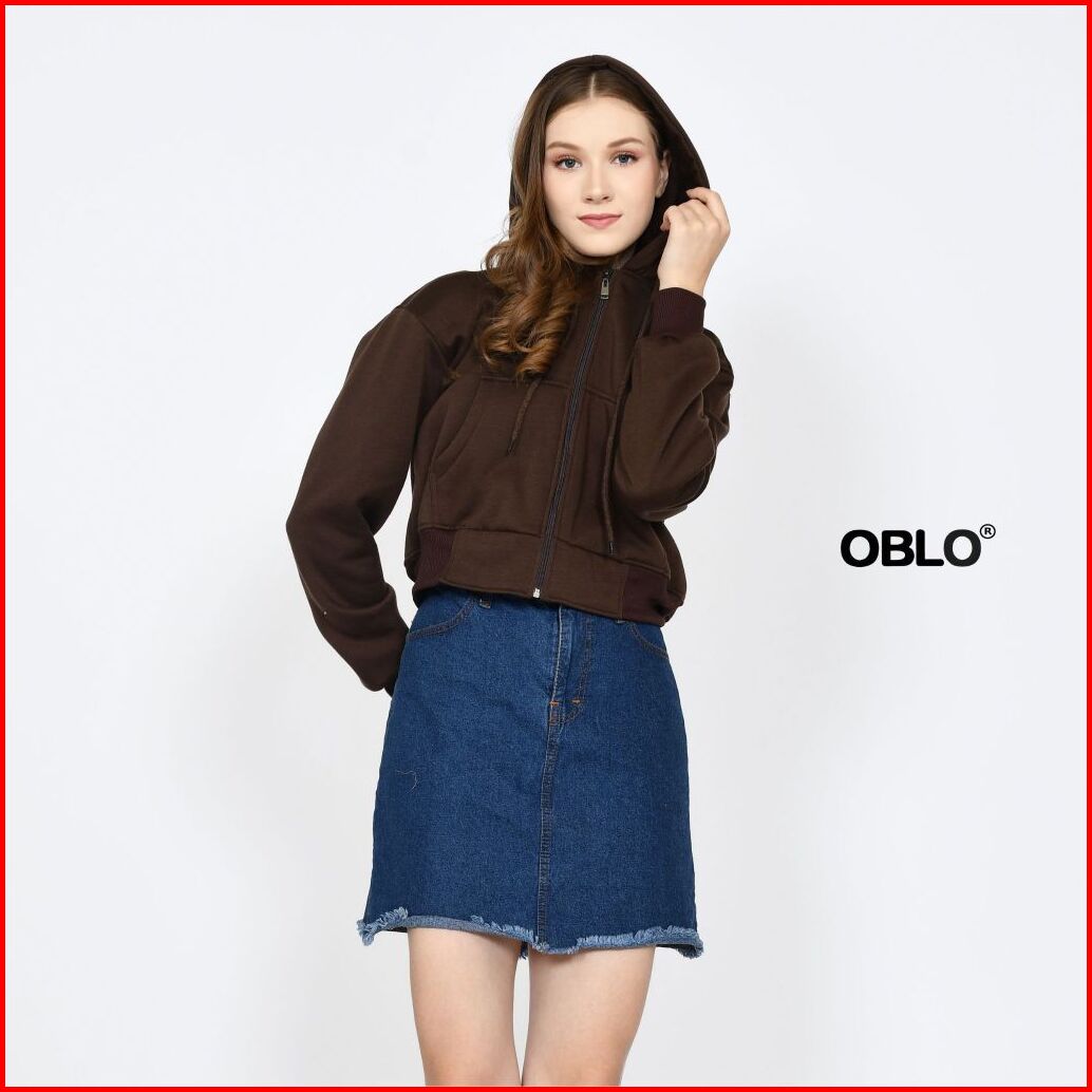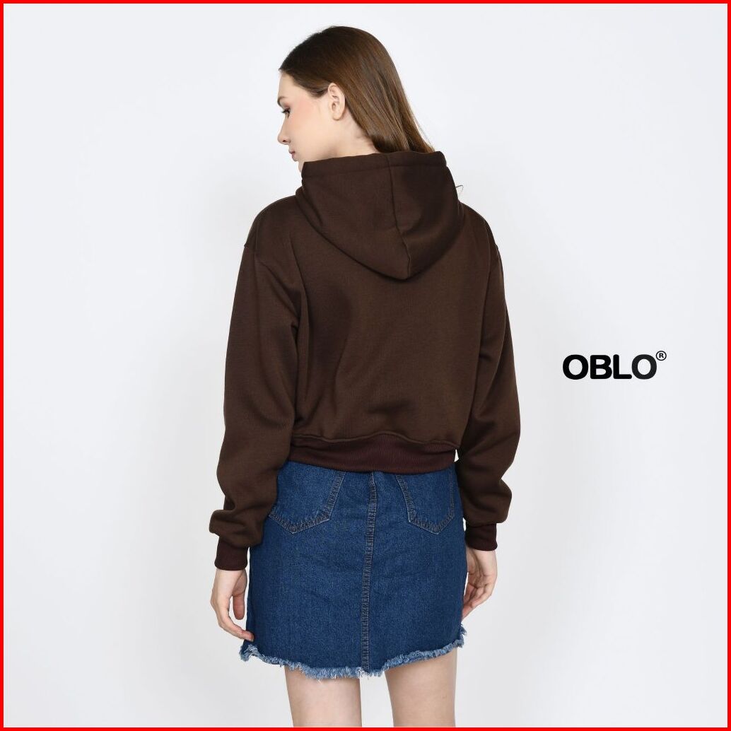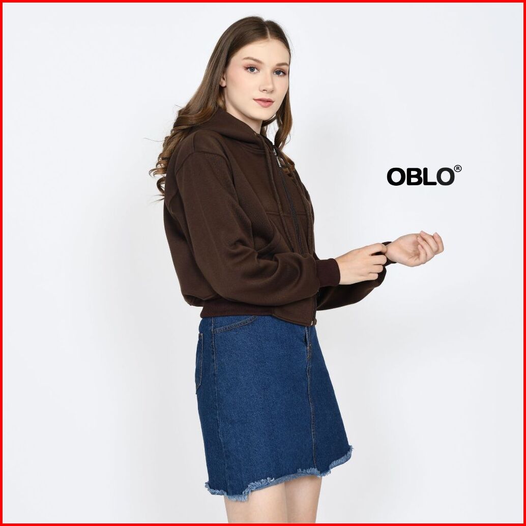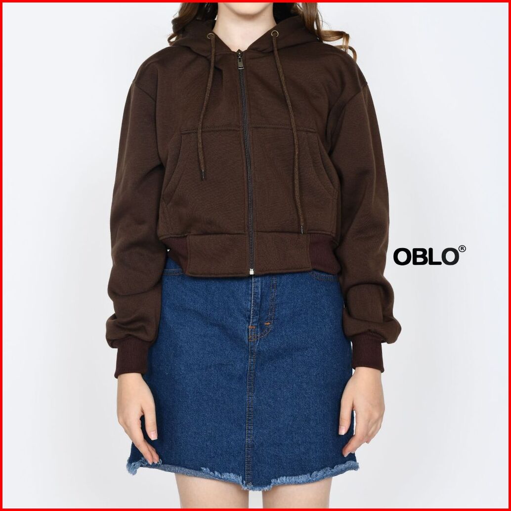 Oblo Basic Hoodie Zipper Crop Polos Jaket Jaket Hoodie Crop Polos Wanita