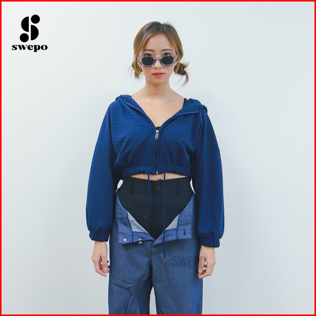 Swepo Hoodie Zipper Crop Joy Size M-l Allsize Dan Xl-xxl Bigsize