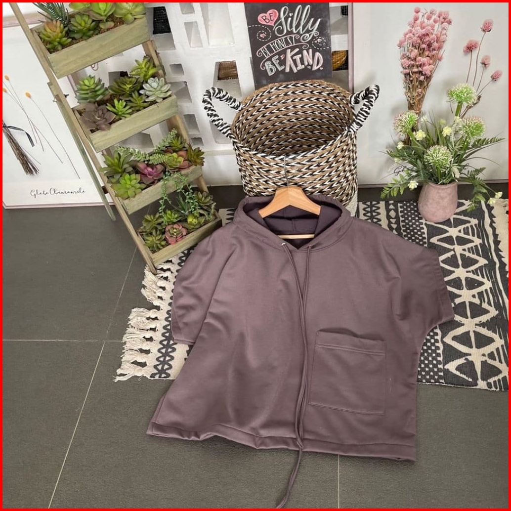Outer Hoodie Crop Wanita Oversize Sporty L To Xxl