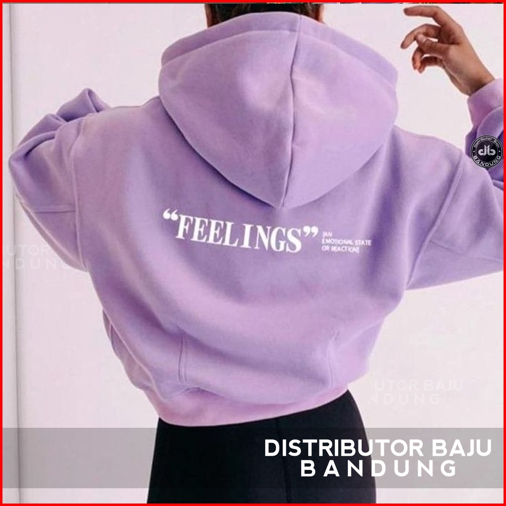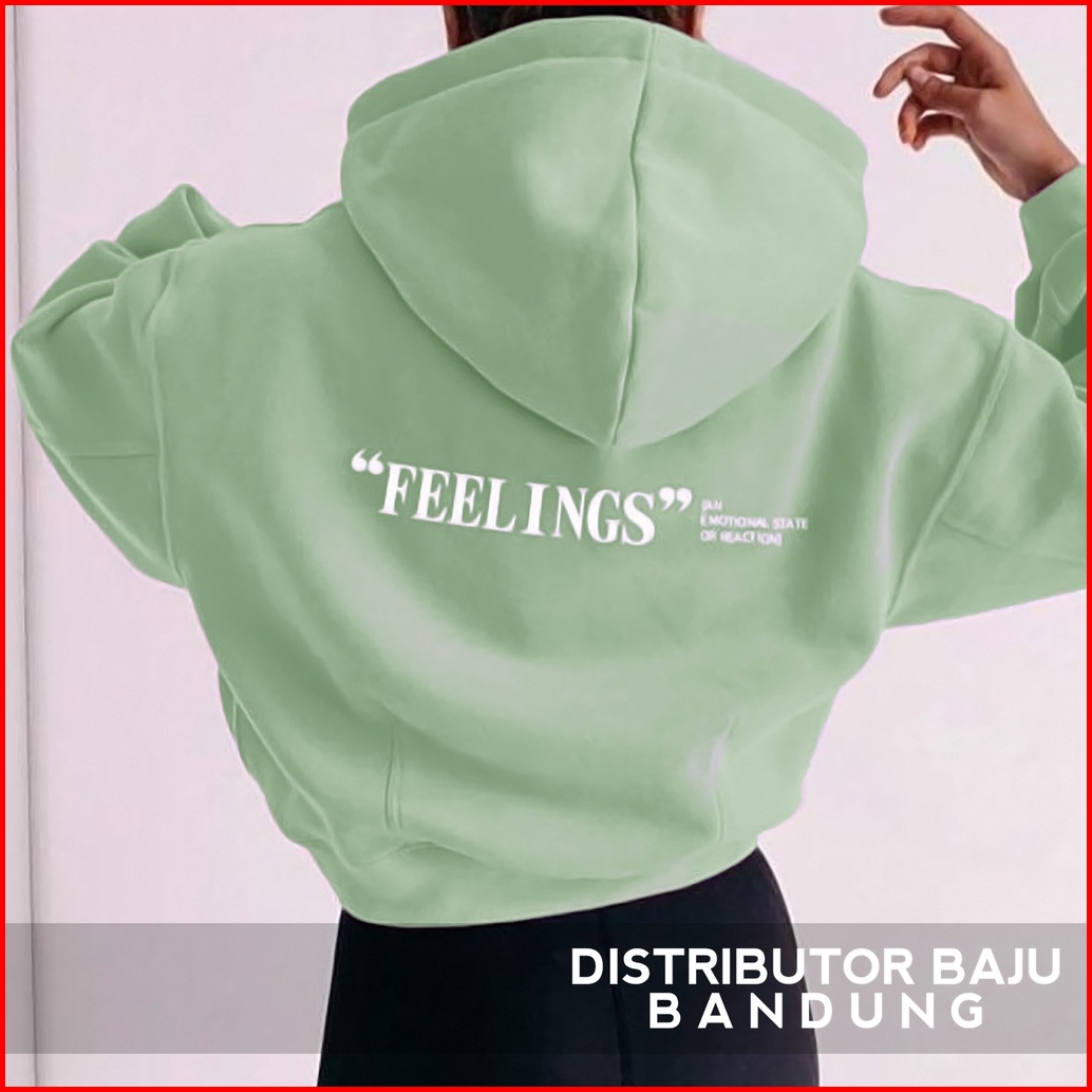 Hoodie Crop Wanita Feelings Korean Style Pakaian Wanita Bahan Fleece Allsize