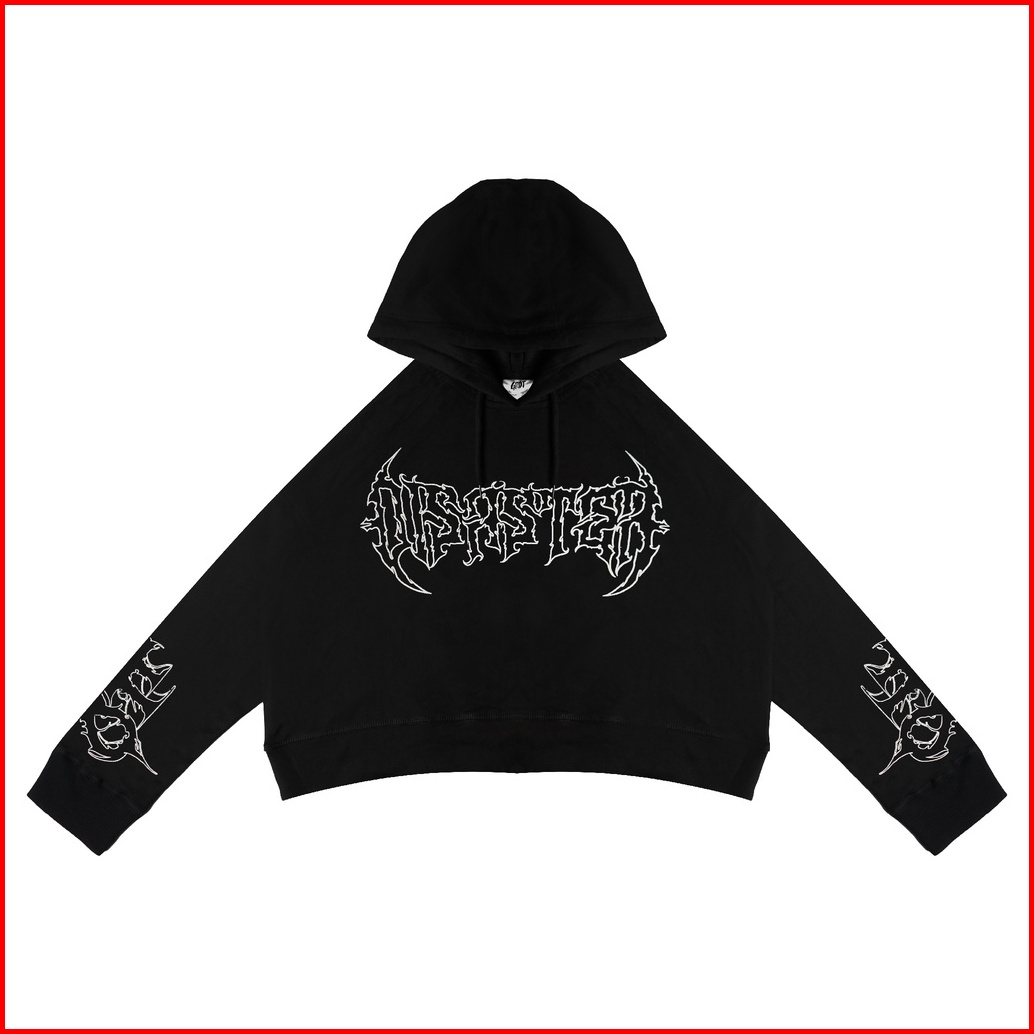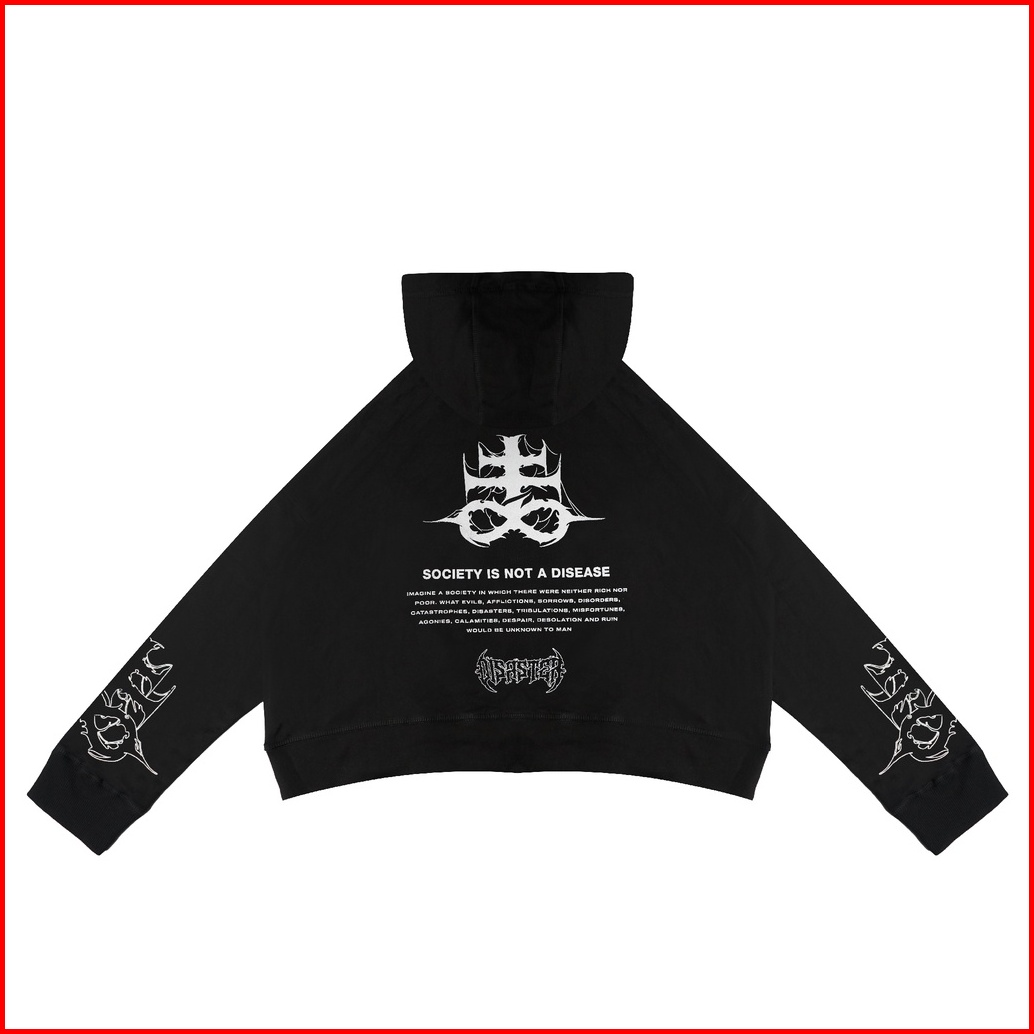 Grdt Dstr Hoodie Oversize Crop Top Black