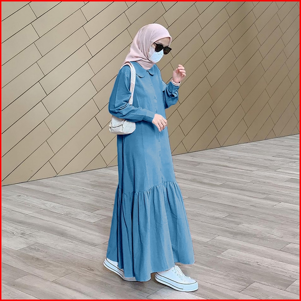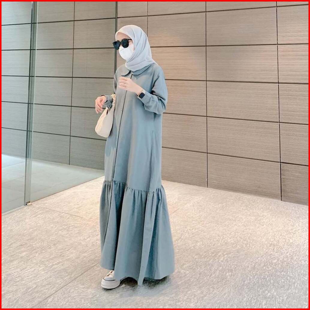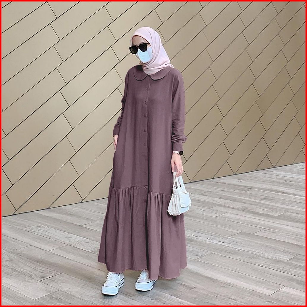 Gamis Katun Polo Linen Naja Maxi Dress Muslim Korean Style Baju Daily Hijab Terkini Ootd Casual 2025