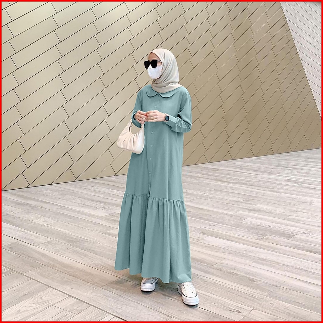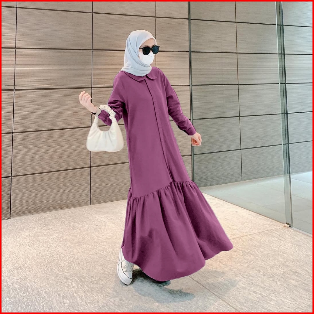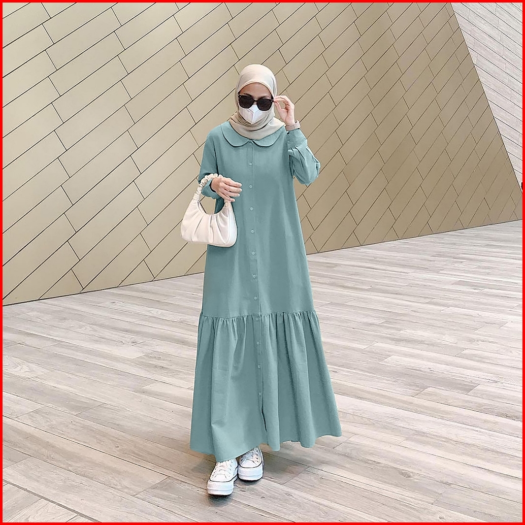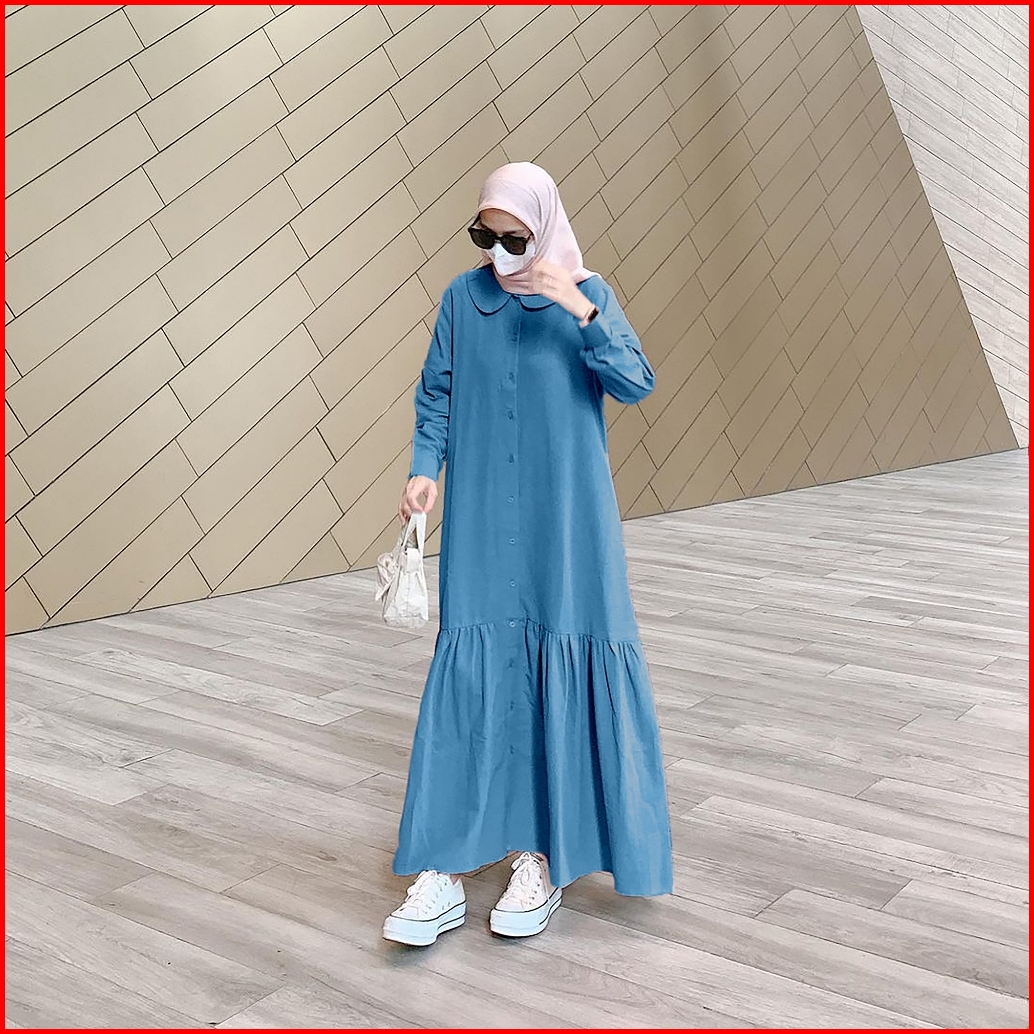 Gamis Katun Polo Linen Naja Maxi Dress Muslim Korean Style Baju Daily Hijab Terkini Ootd Casual 2025