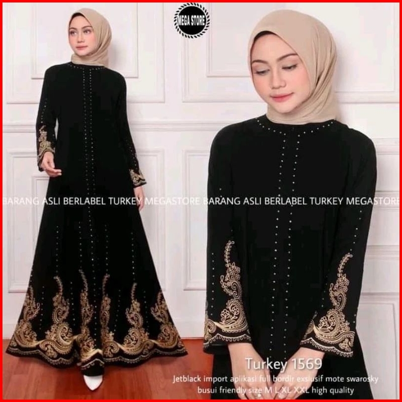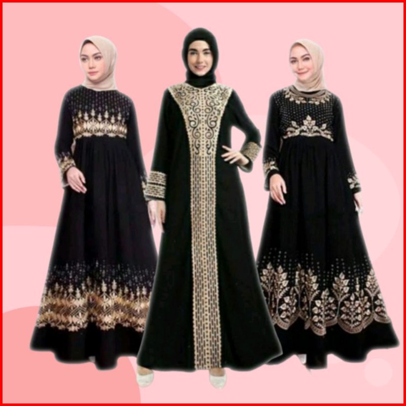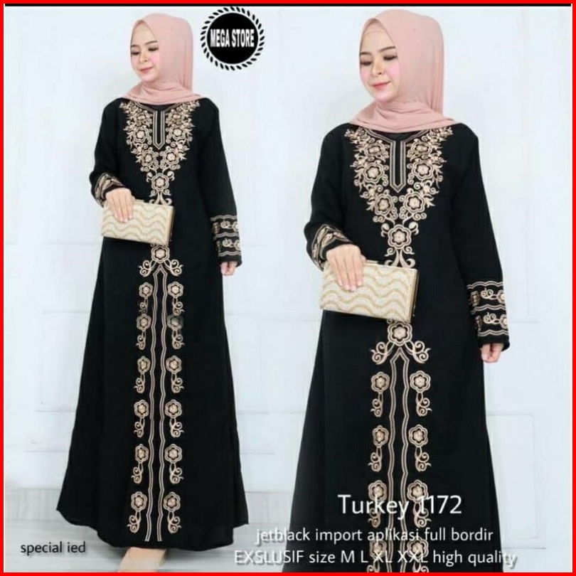 Dress Syari Hitam Juba Abaya Turkey Bordir Arab Saudi Elegan Model Terbaru Mewah Baju Gamis Wanita Dewasa Ibu Muslimah M