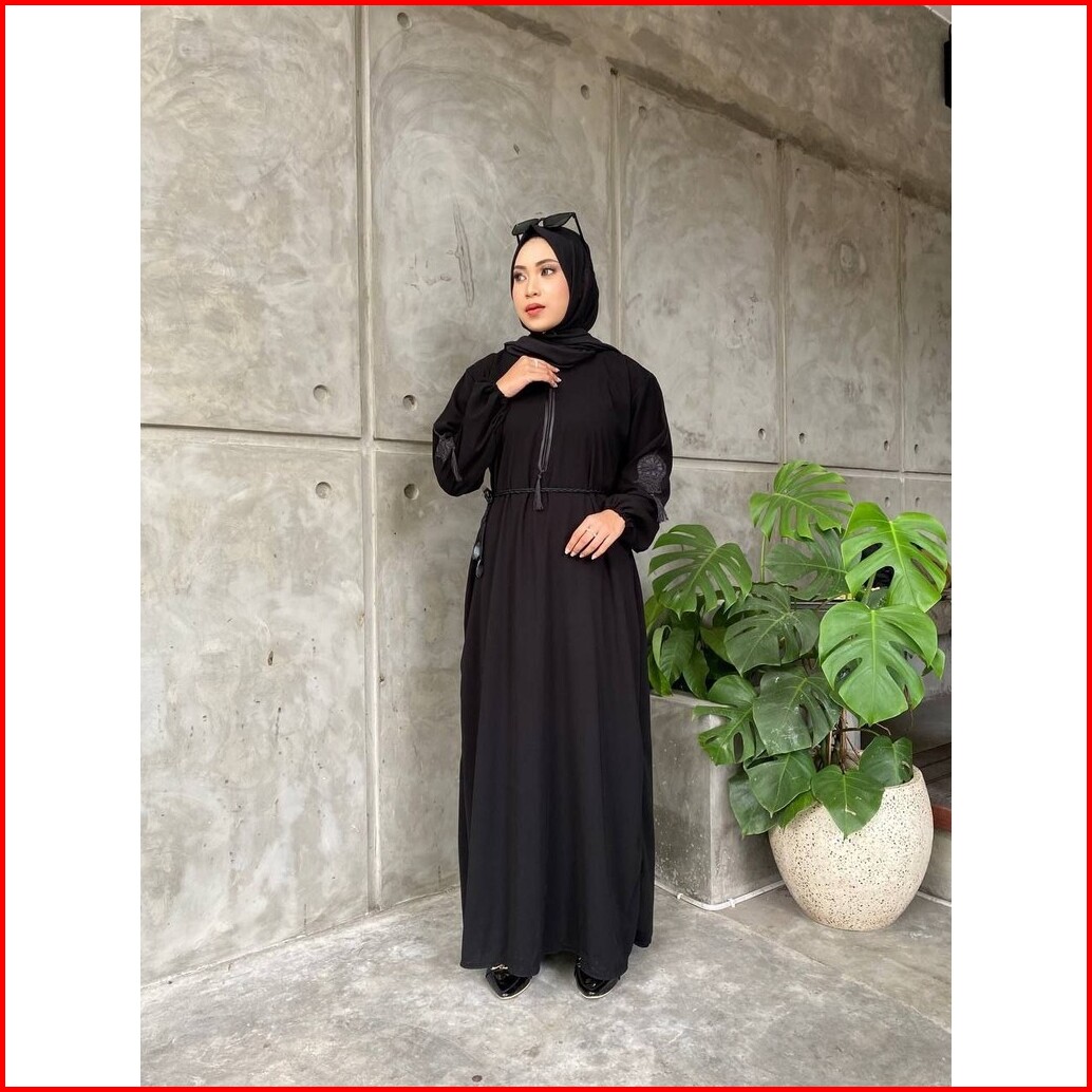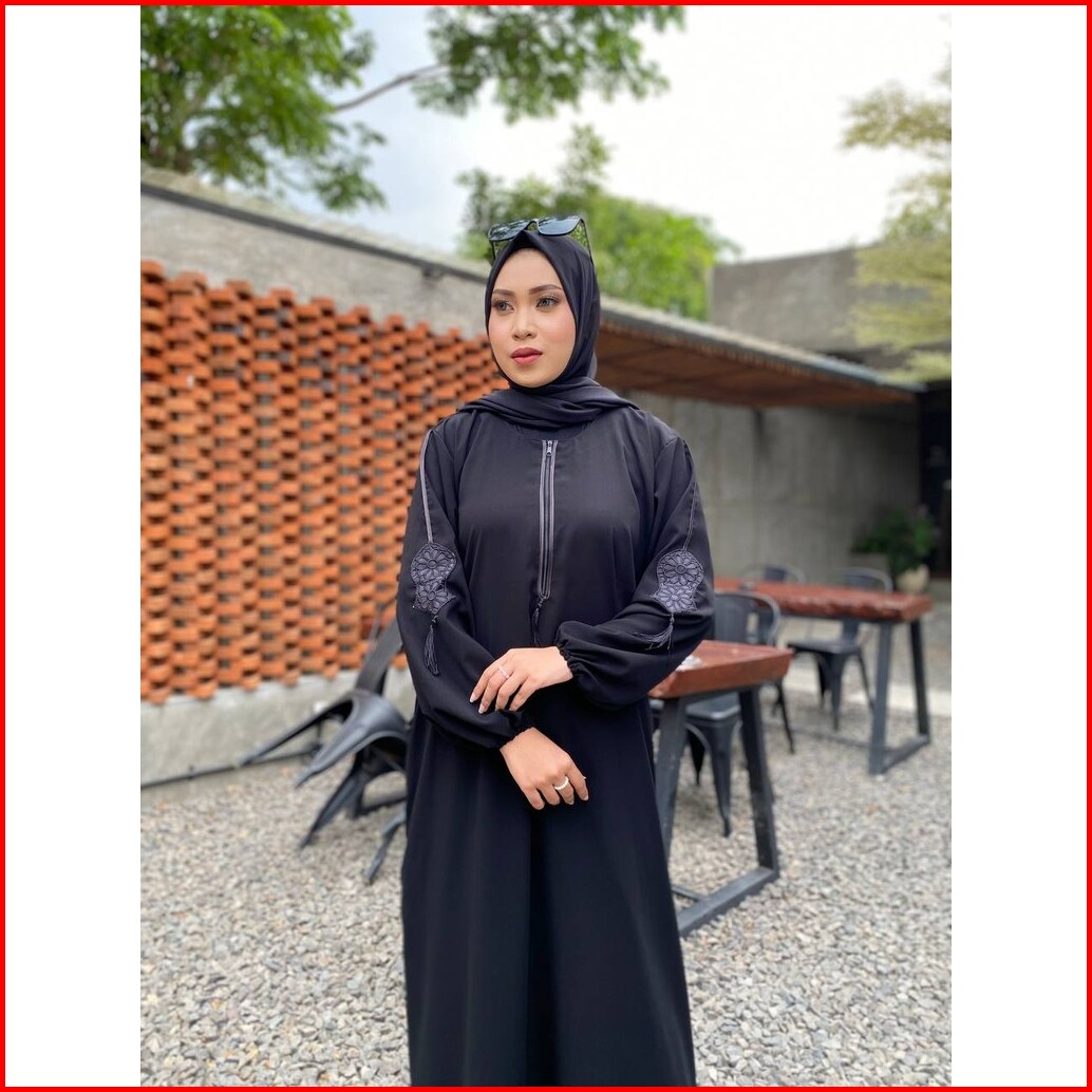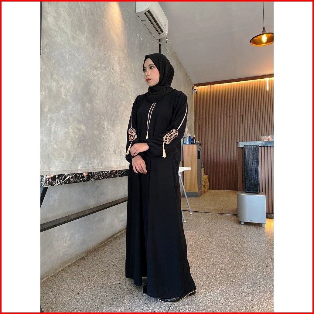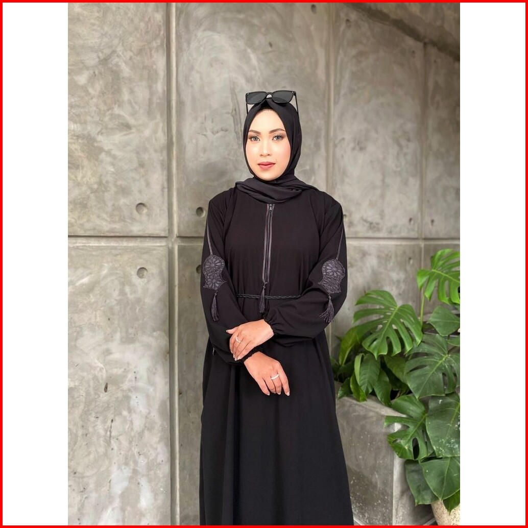 Abaya Gamis Saudi Hitam Jetblack Premium Bordir List Simple - Nuha