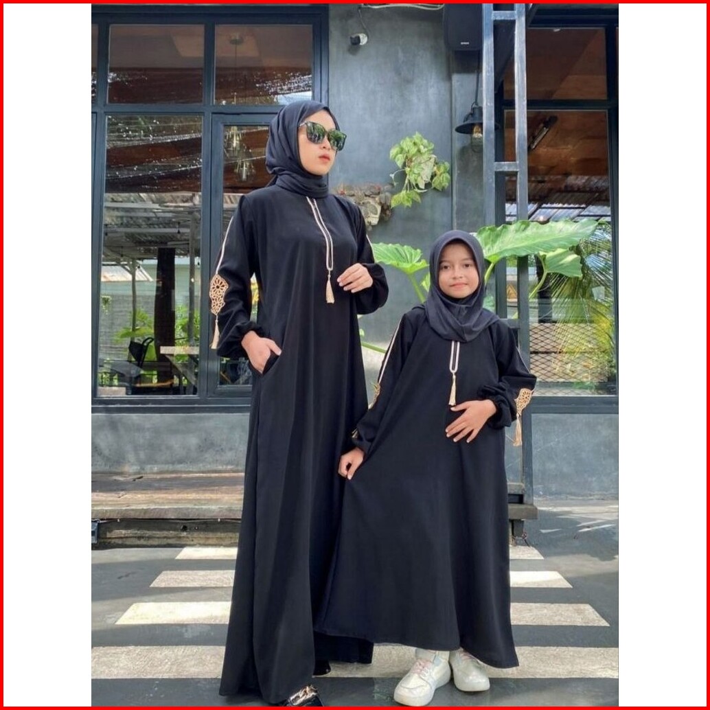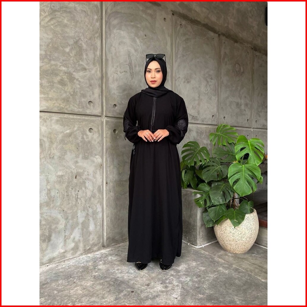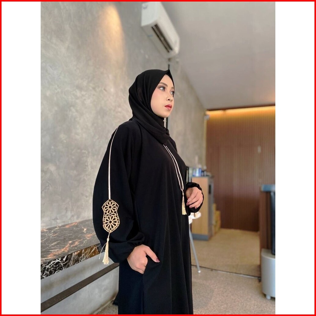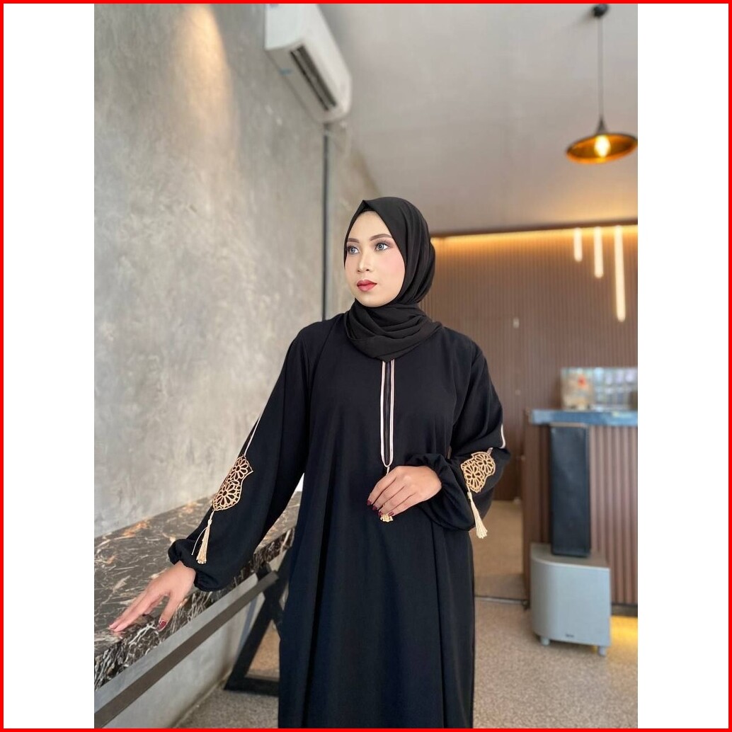 Abaya Gamis Saudi Hitam Jetblack Premium Bordir List Simple - Nuha