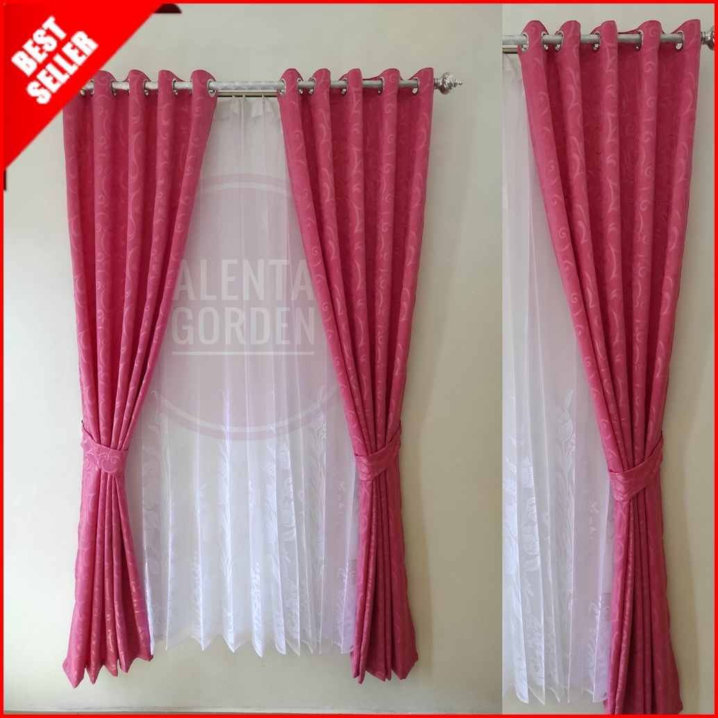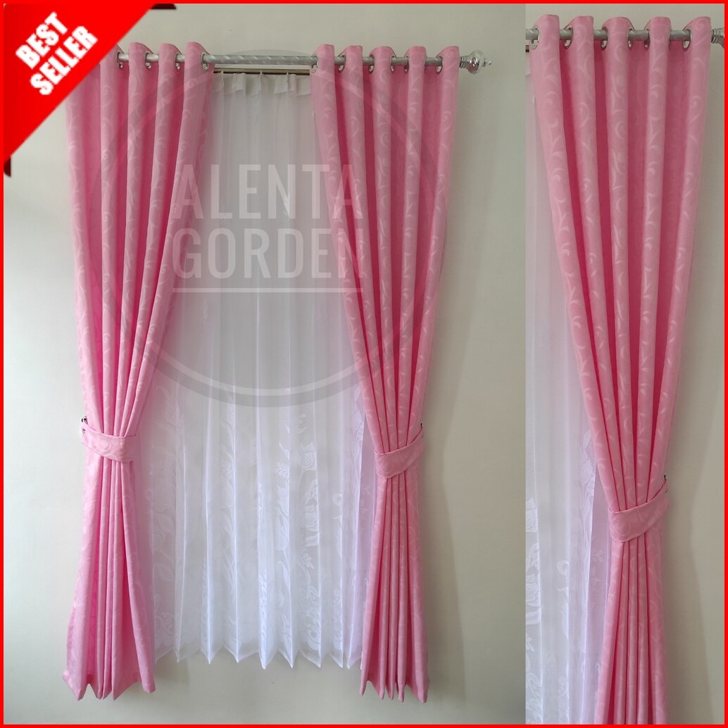 Gorden Jendela Minimalis Pintu Kamar Motif Bunga Tirai Gordyn Smokring Warna Pink Muda