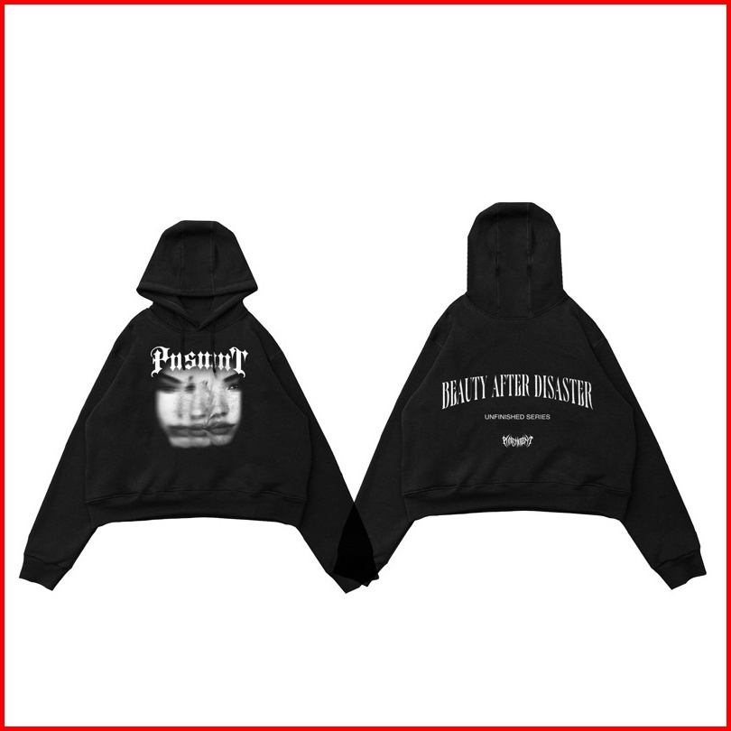 Hoodie Crop Oversize Black Unfinished Original Punisment Free Striker