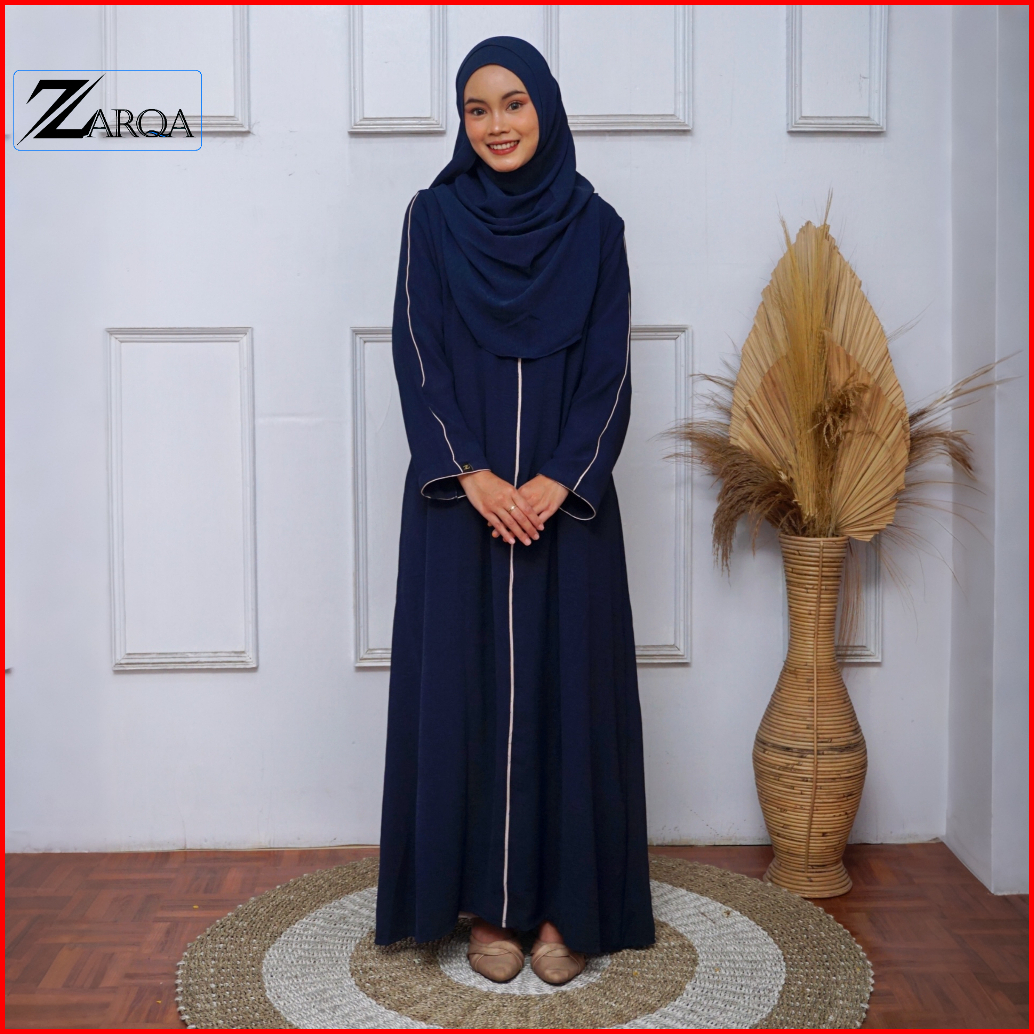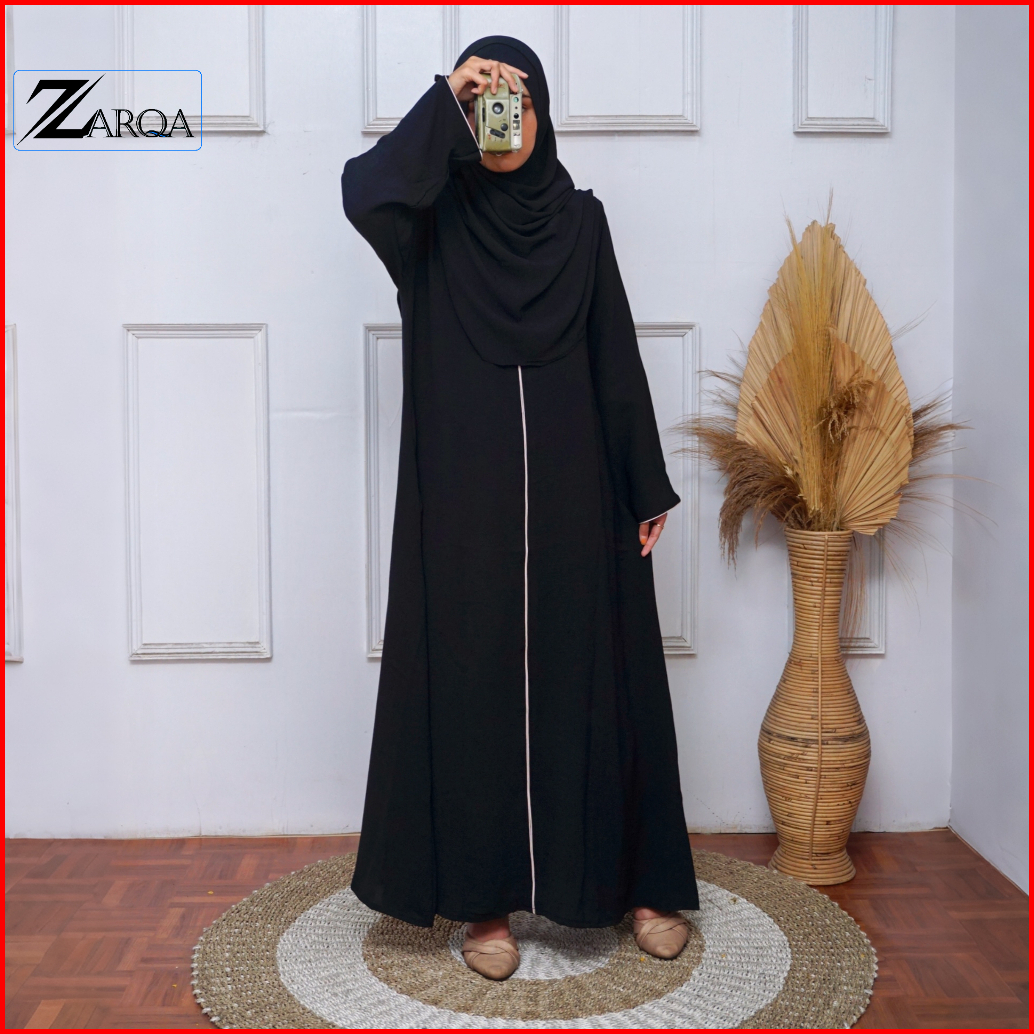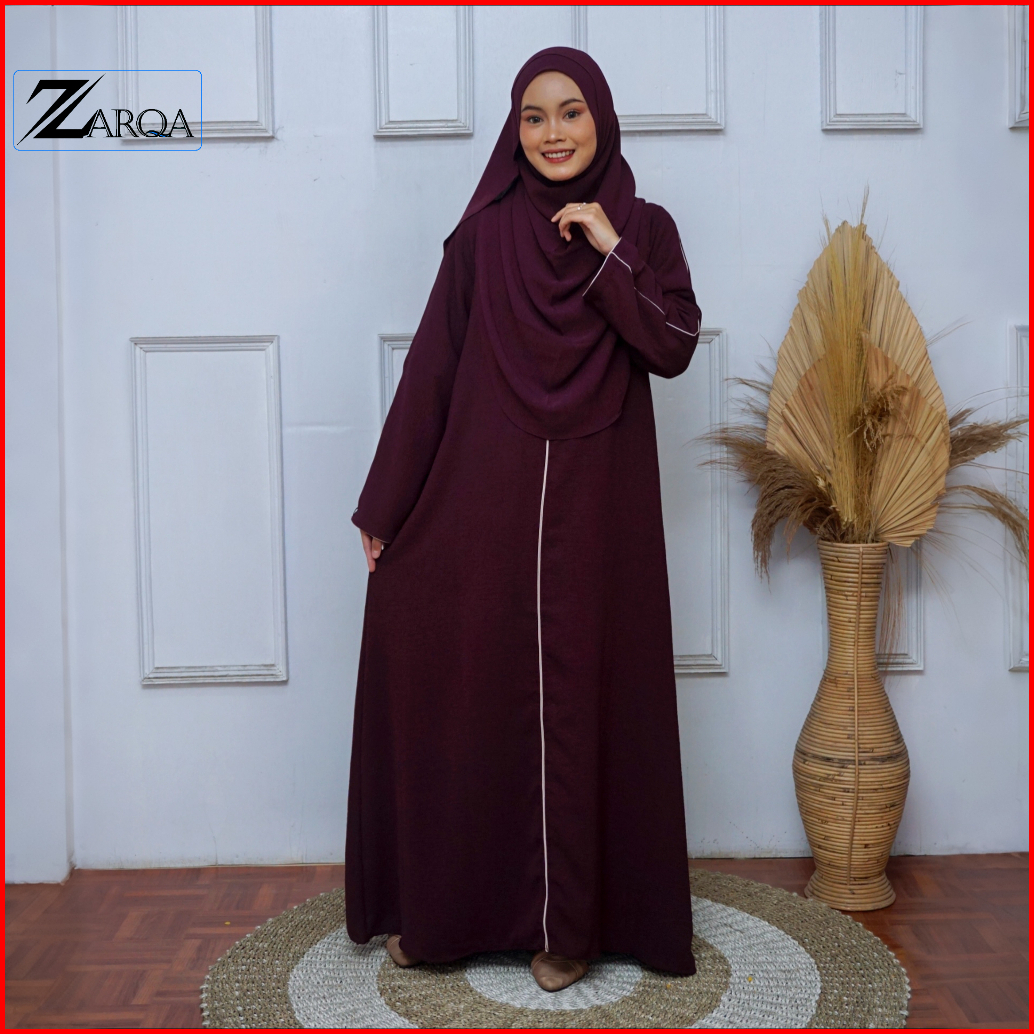 Zarqa - Hafsah Gamis Polos Premium Elegan Simple Dengan Aksen List Depan Busui Wudhu Friendly