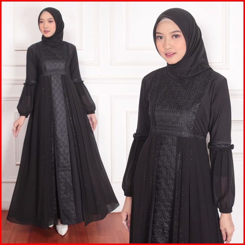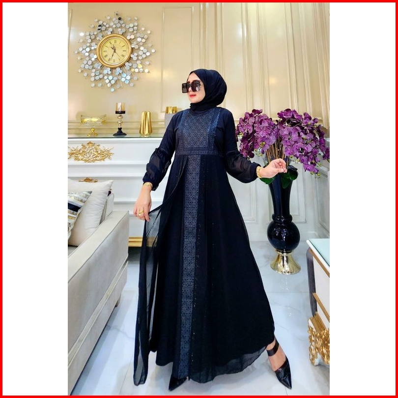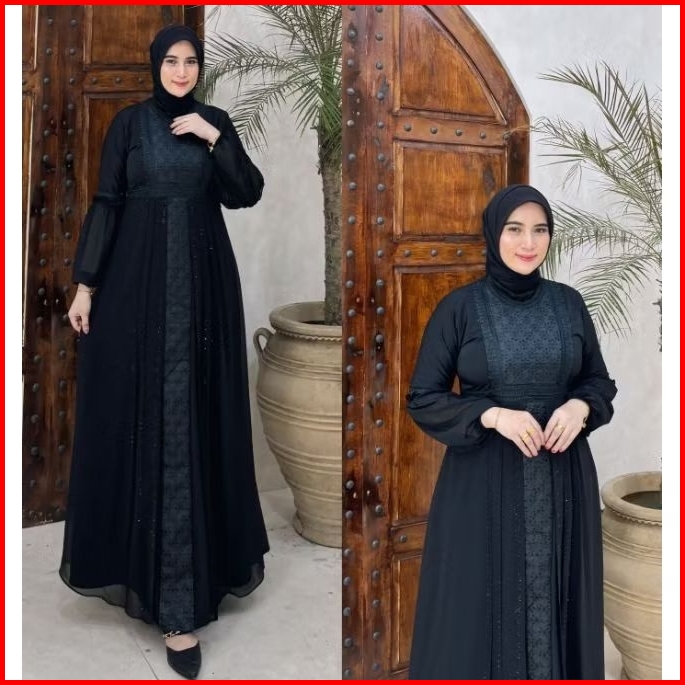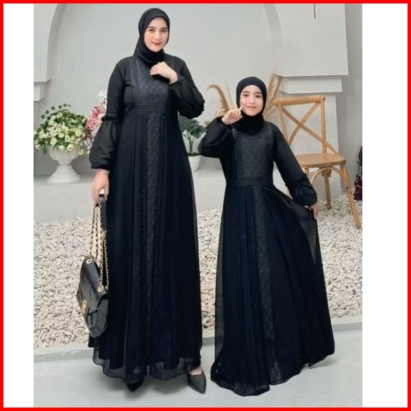 Gamis Abaya Turkey Couple Ibu Anak Bordir Safira Full Hitam