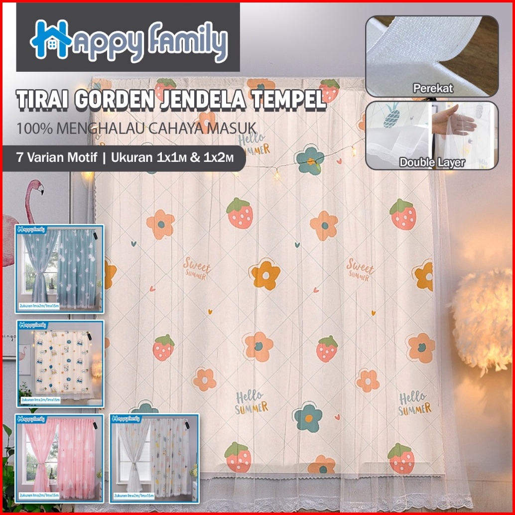 Hf Tirai Gorden Jendela Renda Tempel Tanpa Paku Dan Bor Tirai Magic Tanpa Paku 7 Motif