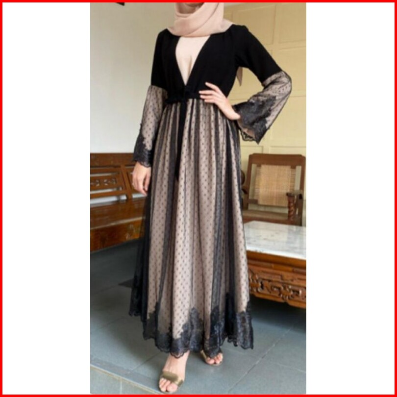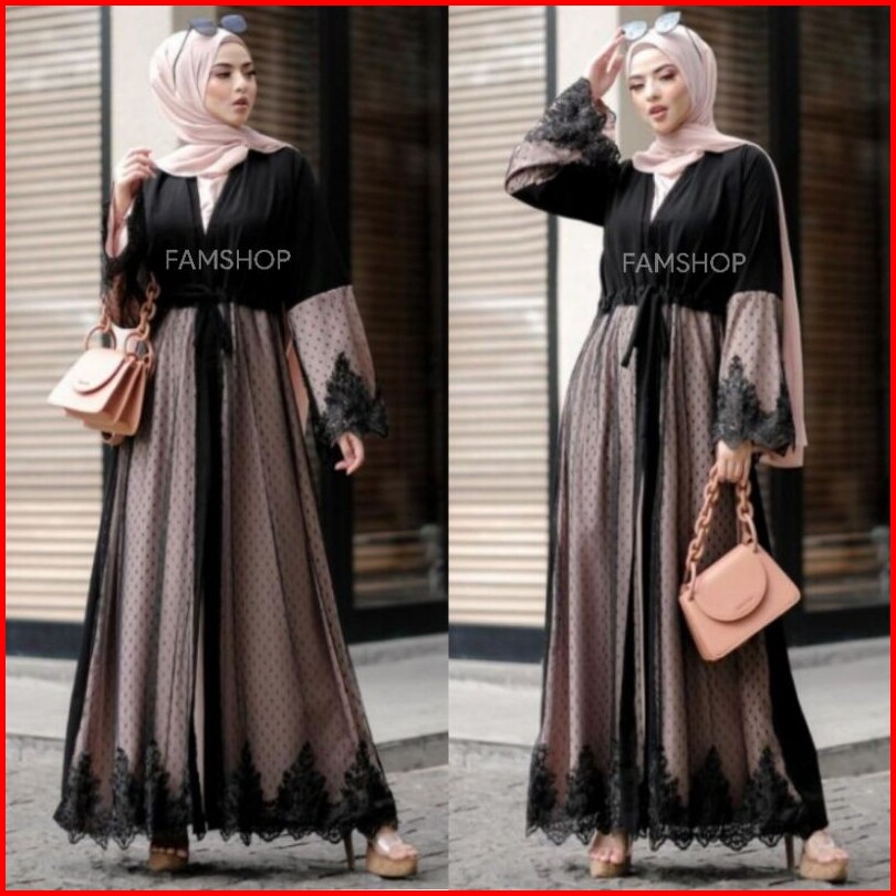 Abaya Turkey Hitam Gamis Dress Maxi Arab Saudi Bordir Dubai Nahla
